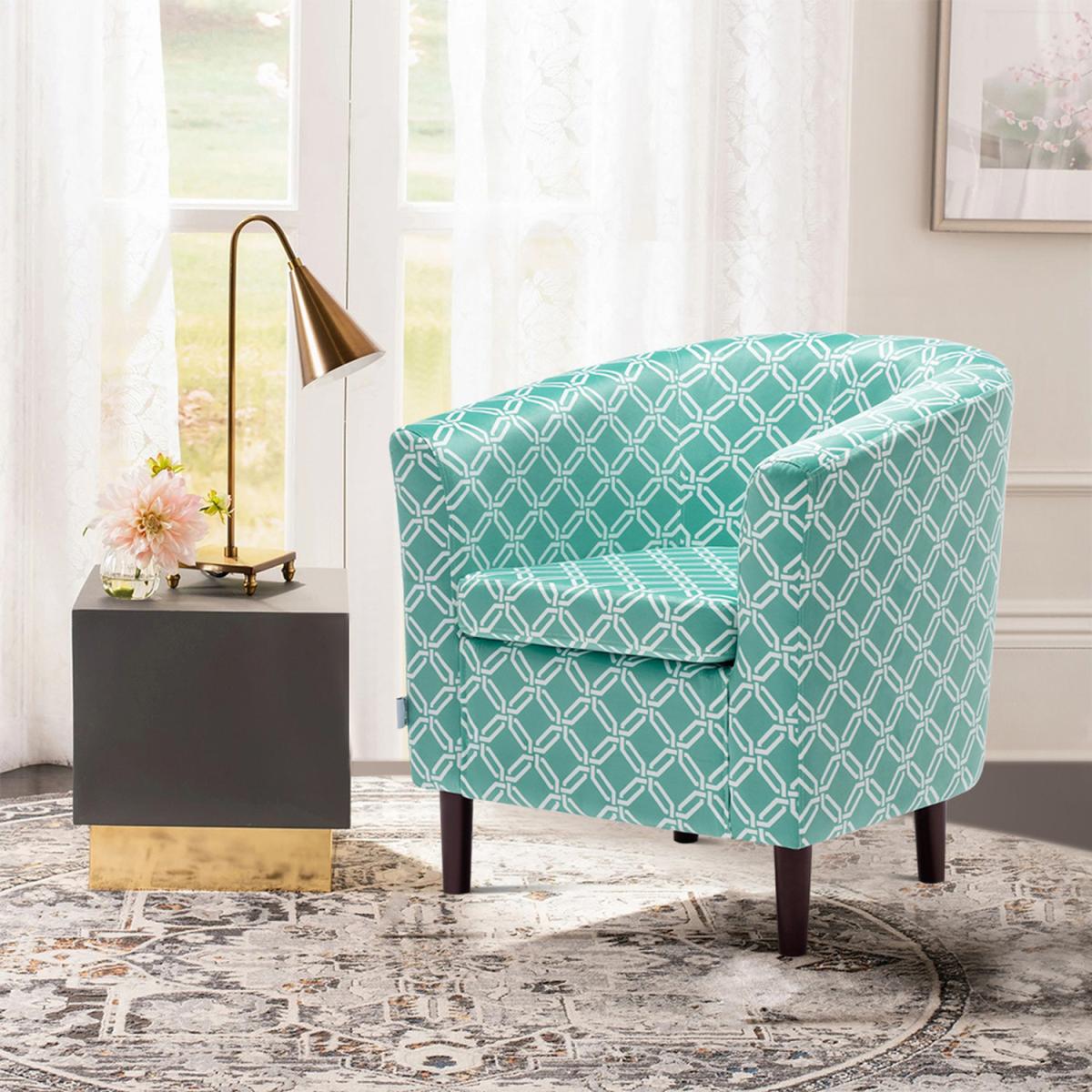 Upholstered Fabric Armchair Tiffany Blue Flower - Turquoise