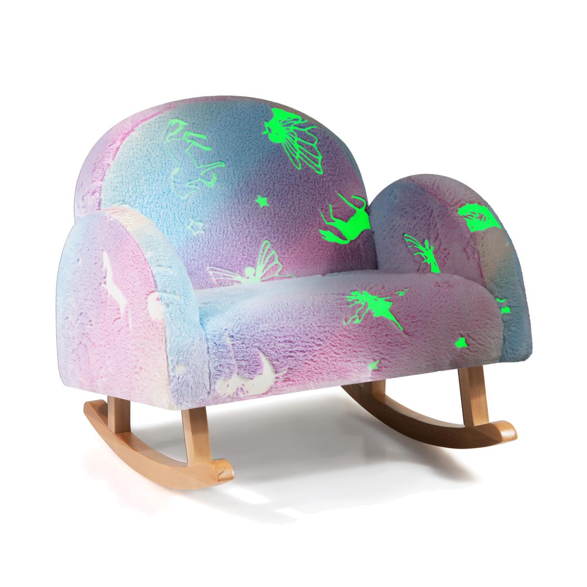 This rocking chair features high-density sponge cushions for long-lasting sitting comfort, while it will create a stylish luminous effect that creates a magical environment after being exposed to sunlight or bright indoor lights. Besides, this chair is thoughtfully designed with a gentle rocking motion that's both soothing and secure, thanks to its curved poplar wood feet and anti-slip pads. Its ergonomic design, with a contoured backrest and supportive armrests, ensures that your child sits comfortably while fostering good posture. Hence, it can be an ideal gift for kids aged 3-5 years old.