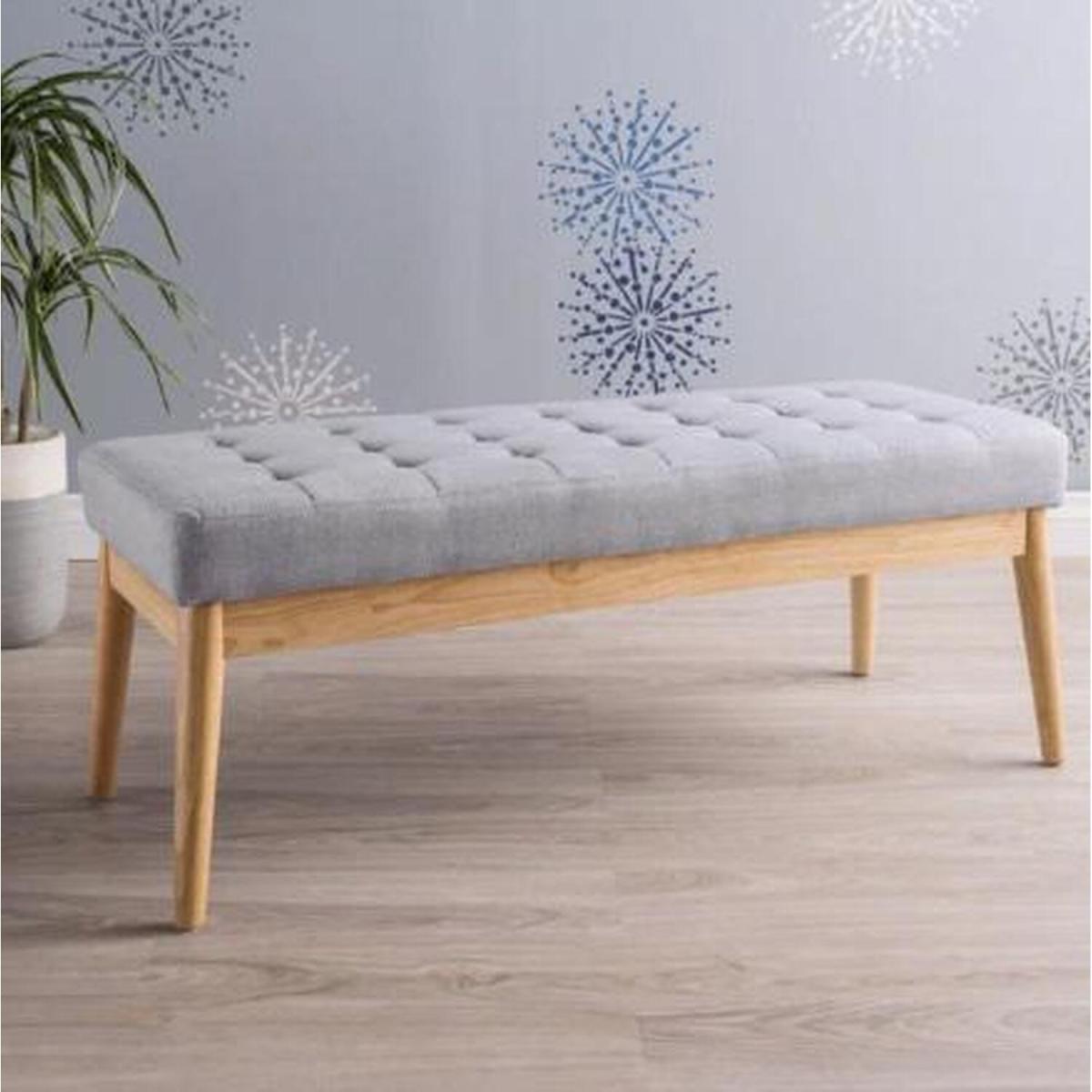Made from the highest quality materials, the Upholstered Light Grey Bench Seat boasts an elegant light grey upholstered seat, adorned with a delicate button pattern that adds a touch of sophistication. The extra comfortable padding ensures a plush and inviting sitting experience, making it the ideal perch for relaxation or casual gatherings. Complementing the luxurious seat is a contrasting two-tone oak frame and legs, which lend a warm and natural aesthetic to the overall design. This harmonious blend of light grey and rich oak creates a visually striking piece that will seamlessly integrate into a variety of interior decor styles. For your convenience, the Upholstered Light Grey Bench Seat is delivered partially assembled, allowing for easy home assembly. This ensures a hassle-free installation process, enabling you to enjoy your new piece of furniture in no time. Designed to elevate your living space, the Upholstered Light Grey Bench Seat is a testament to exceptional craftsmanship and timeless style. Whether used as a stylish entryway bench, a practical seating solution in your living room, or a versatile piece in your bedroom, this bench seat will instantly become the focal point of any room.