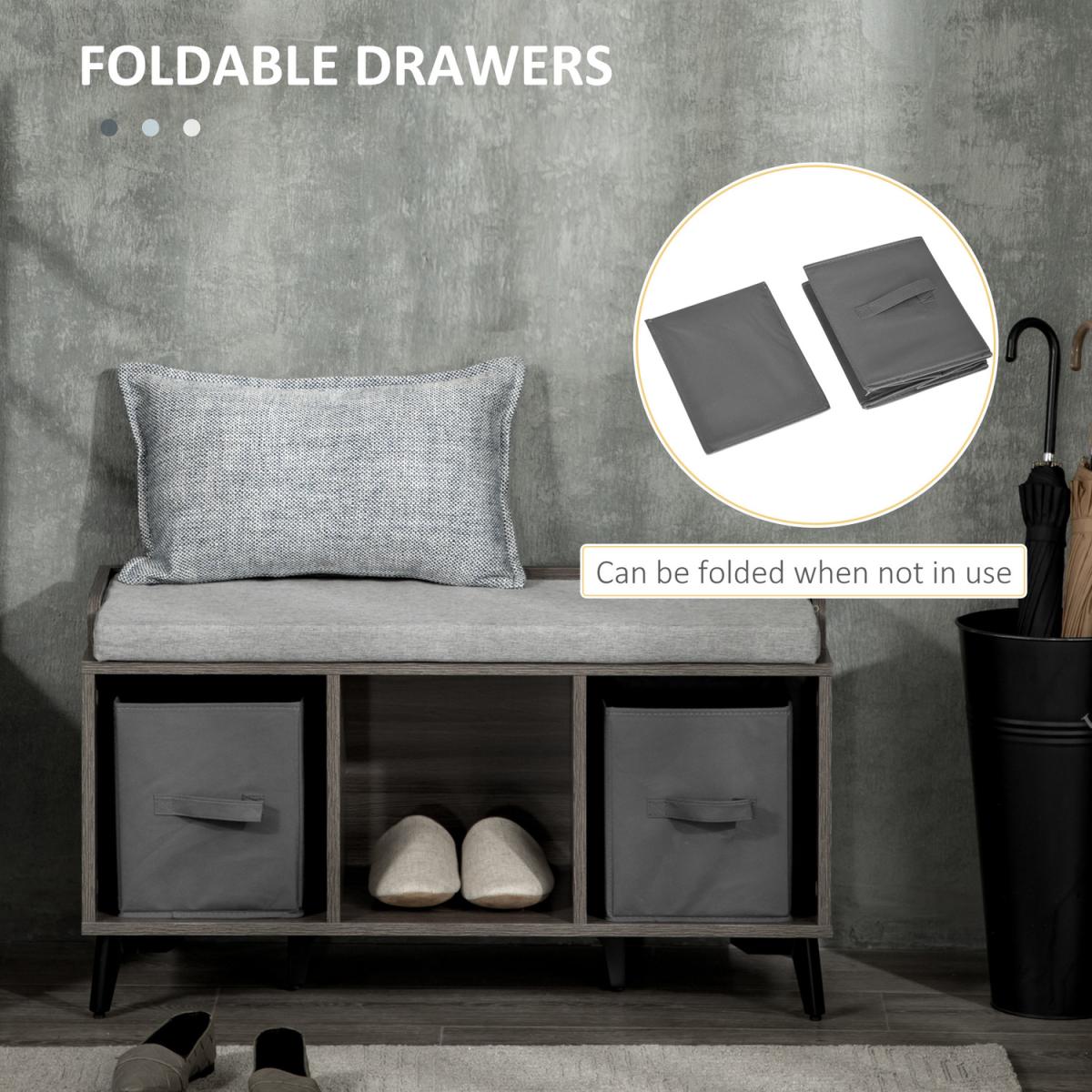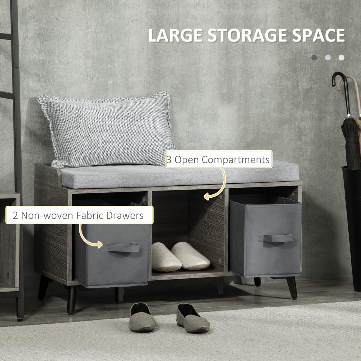 It's time to organize your shoes with our HOMCOM shoe bench. Its simple and modern look makes it pair well with any decor in your room. You can put shoes, keys, and anything else you would like in the shelf and fabric box to enable space in your home. The open design makes it easy to find your shoes at once. Also, our HOMCOM shoe bench can be used as a storage cabinet in the living room, entryway, and other places. Keep your shoes neatly and tucked away with our multi-use bench with storage.