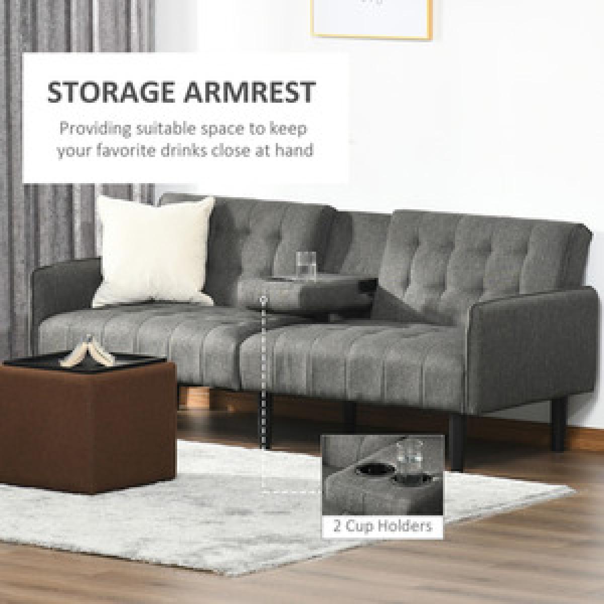 Upholstered Sofa bed 3 Seater with Cup Holders - Grey