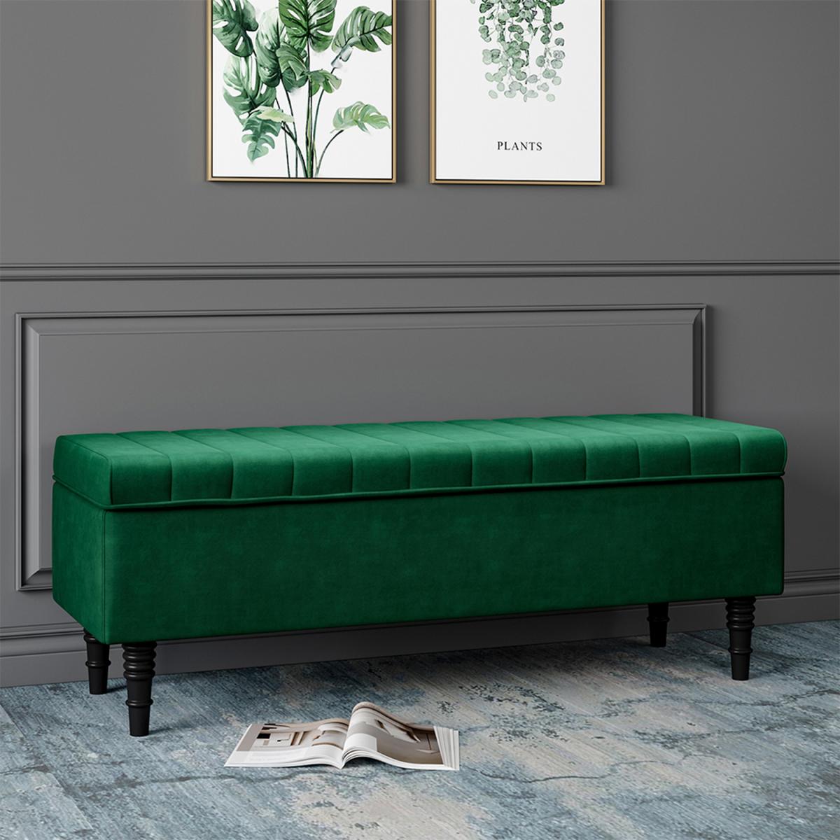 Featuring deep striped tufting and rectangular stitching, our storage ottoman offers the look, offers an extra touch of sophistication that enhances its contemporary design. With removable legs, adjust the height by adding or removing sturdy legs, adapting this ottoman to suit your storage needs. The cushioned lid is comfortable and supportive, with an invisible hinge design, soft-close for safety, will not catch your fingers. This ottoman bench can function as extra seating while you put on your shoes or can act as storage space for all of your pillows and blankets. Flat packing, all of the instructions and tools needed for assembly are included. Perfect for your living room, foyer, or bedroom, use it as a bed end bench, hallway bench, window seat, etc.