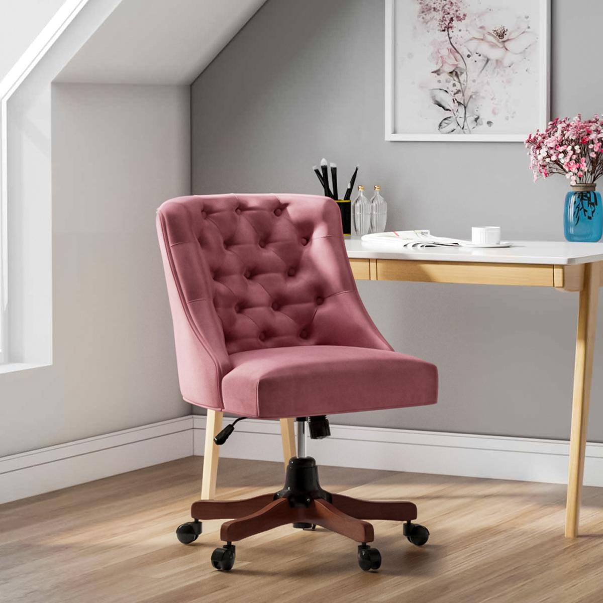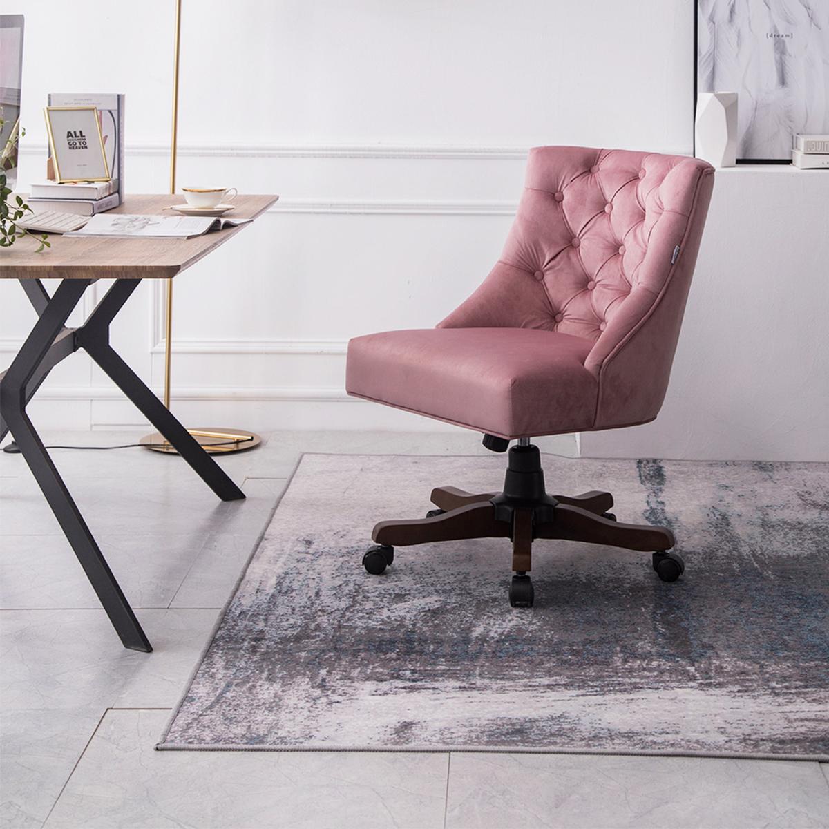 Our chair comes in a comfortable velvet fabric, seat with soft sponge infilling and thick padded cushion offering added comfort. Thick padded seat and durable medium-back with ergonomic modern design. The chair gives a comfortable feeling to your waist while sitting, which helps to keep your back supported. Gas lift design, for adjustable seat height, you can adjust the seat according to your need, for your convenient use. There are 5 pulleys at the bottom of the legs for easy movement.chrome base, it will ensure the stability to the seat, make it more sturdy and safety.