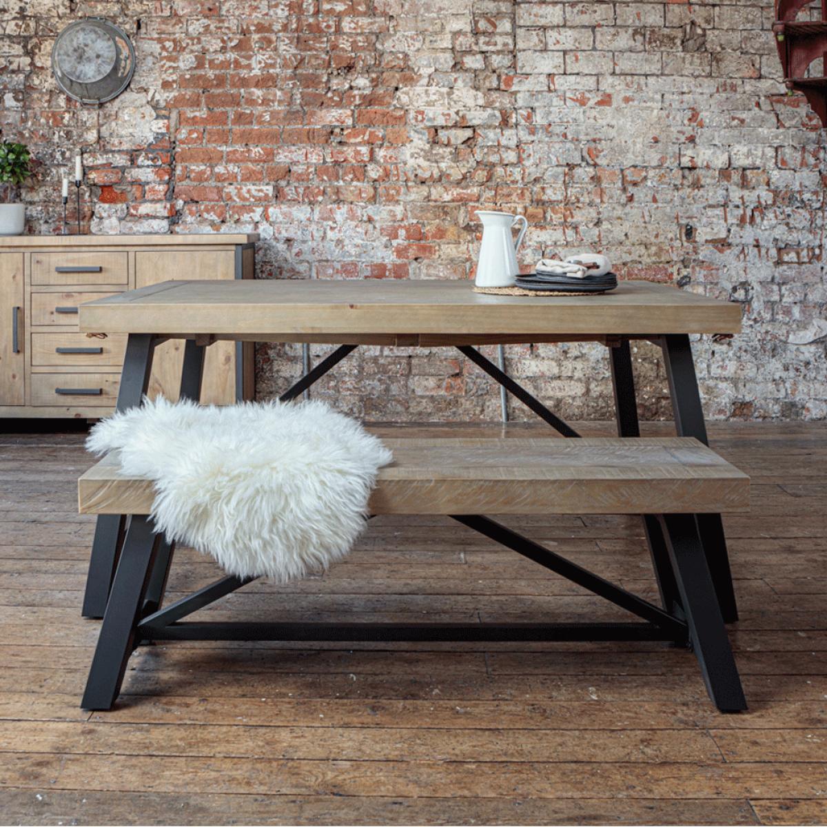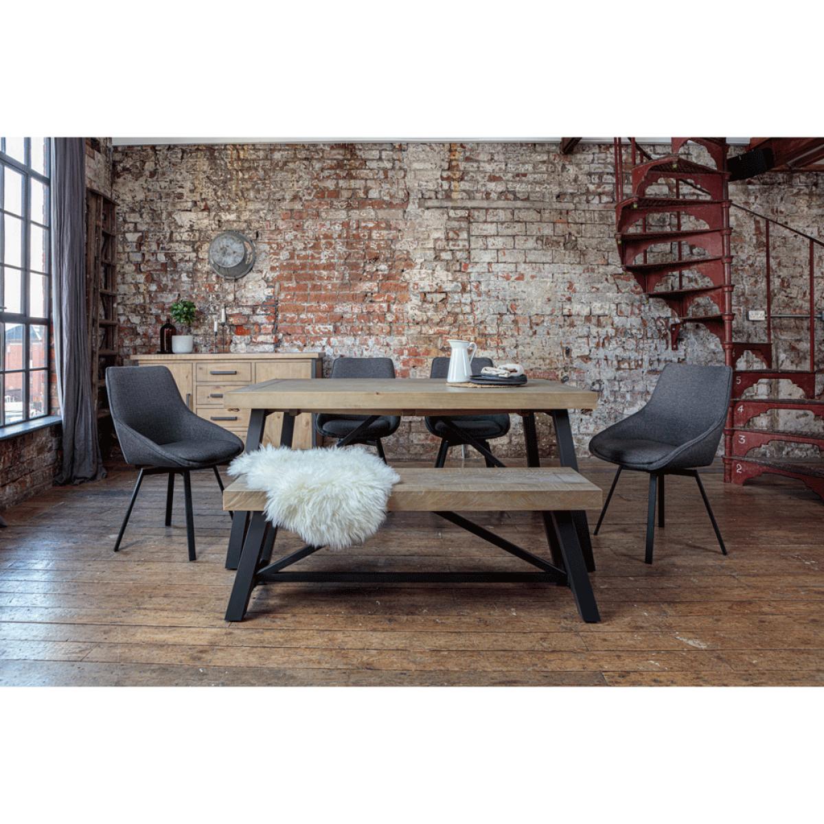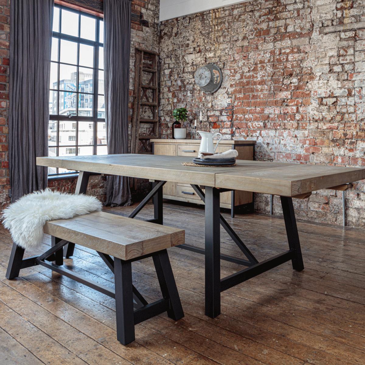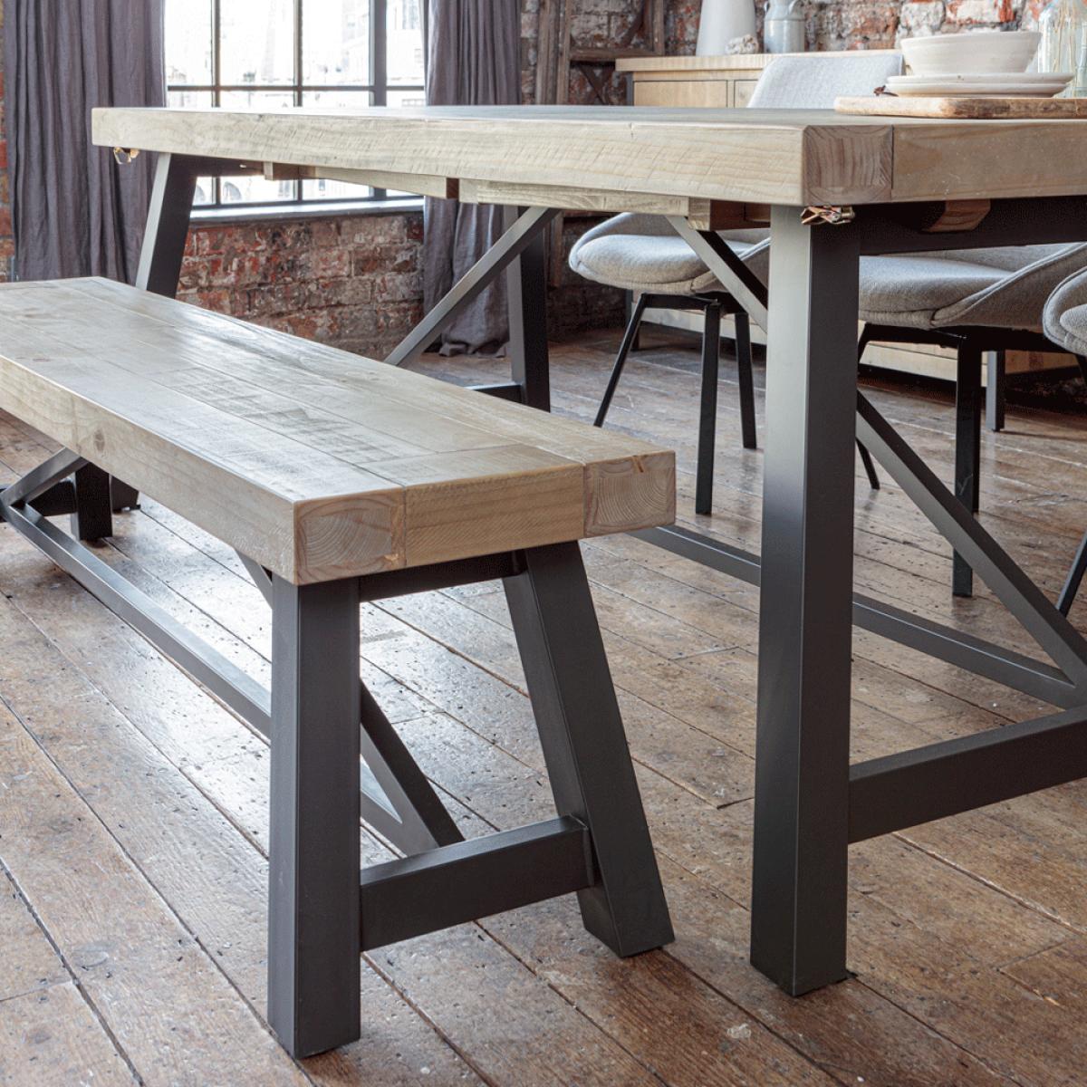 Set price represents a 10% saving when compared with buying all the items individually. Urban 1. 6 metre table set consists of:. Introduce some delectable modern furniture to your space with the stylish Urban dining range. This 1. 6 metre dining set comes with 4 Gaudi dining chairs and small Urban pine bench, therefore this delectable pine table as-is would accommodate 6 people. By further adding the urban extension leaf included within this set it’s possible to boost numbers to 8. If adding a second extension leaf (to be purchased separately) this set could seat up to 10 people. The clever extending jousts are hidden on the table’s underside and therefore this contemporary furniture visually benefits from a lack of central crease, like many other extendable tables tend to have. The lacquer finish of the driftwood tone pine wood combines pleasingly with the dark grey of the gun metal stainless steel base, a sturdy design that’s been powder coated in order to increase its life. The Gaudi fabric dining chairs that accompany this set were paired because of their lovely modern design. The dark grey fabric matches the bases expertly, but the real showpiece is the splayed metal bases. These bases, like the table, have been powder coated for an increased life. A swivel motion is given to the dining chairs meaning socialising is always easy! The Urban bench comes in the same chunky lacquered pine as the table and undeniably suits the set as a whole. Also available is a. 1. 6 metre set with a light grey Gaudi. Chair pairing and. 2 metre table pre determined sets. See the entire Urban range,. Here.