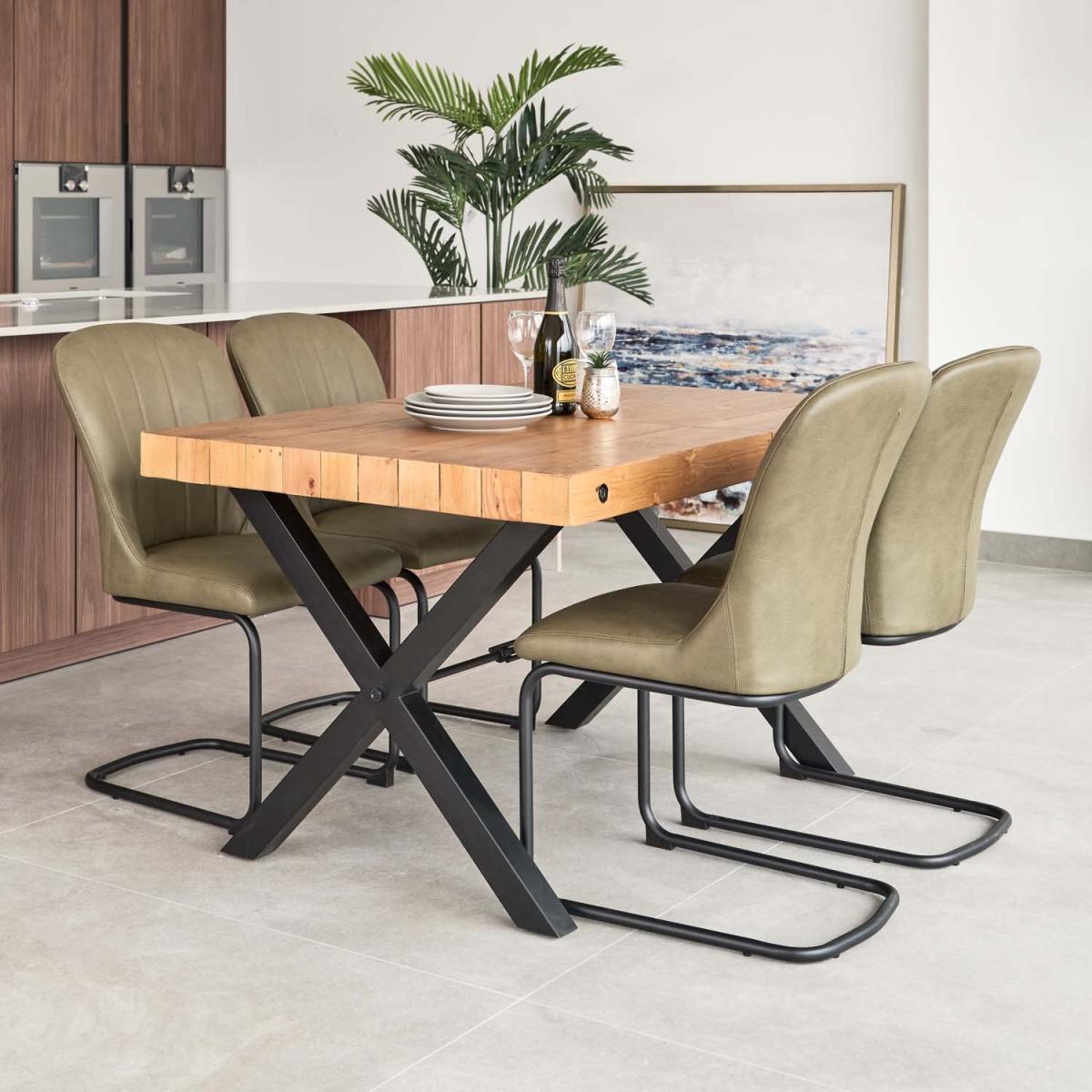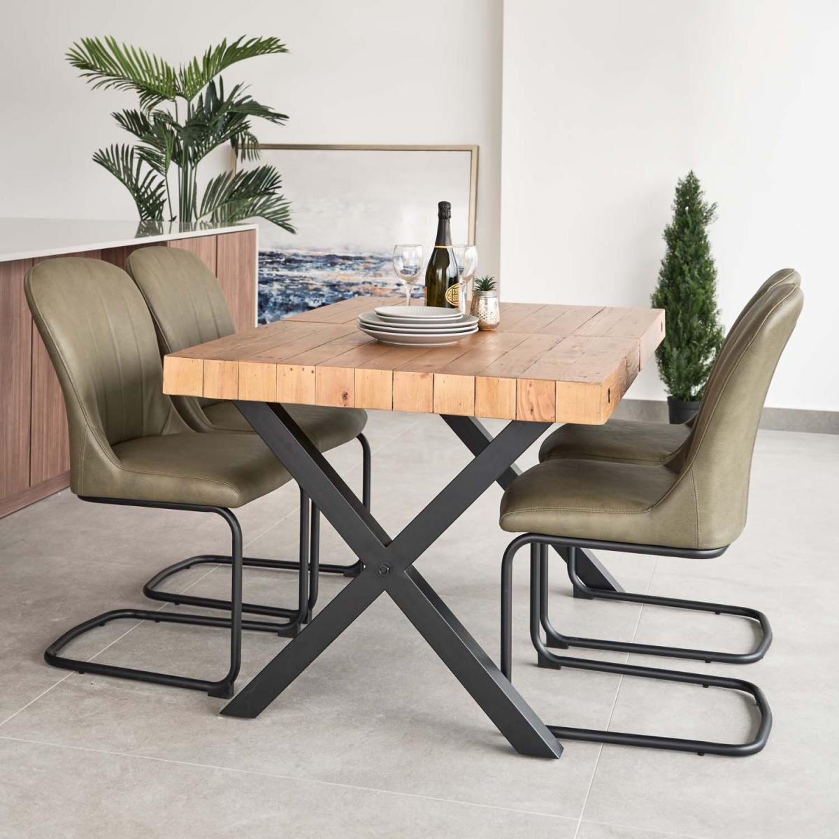 The Urban Extending Dining Table is a practical piece that would make a statement in any dining area. The tabletop is made using reclaimed timber, sanded and finished so it's smooth to the touch but showcasing its history in the unique marks and wood grain. The solid metal legs are cross formed and finished with a black coating. The Firenza Dining Chair has a curved back with a soft and durable faux leather upholstery. The base is a cantilever design which offers a support and a little spring to the back when you relax into it. With a gorgeous chic yet modern look, these four chairs fit perfectly around the Urban extending table.