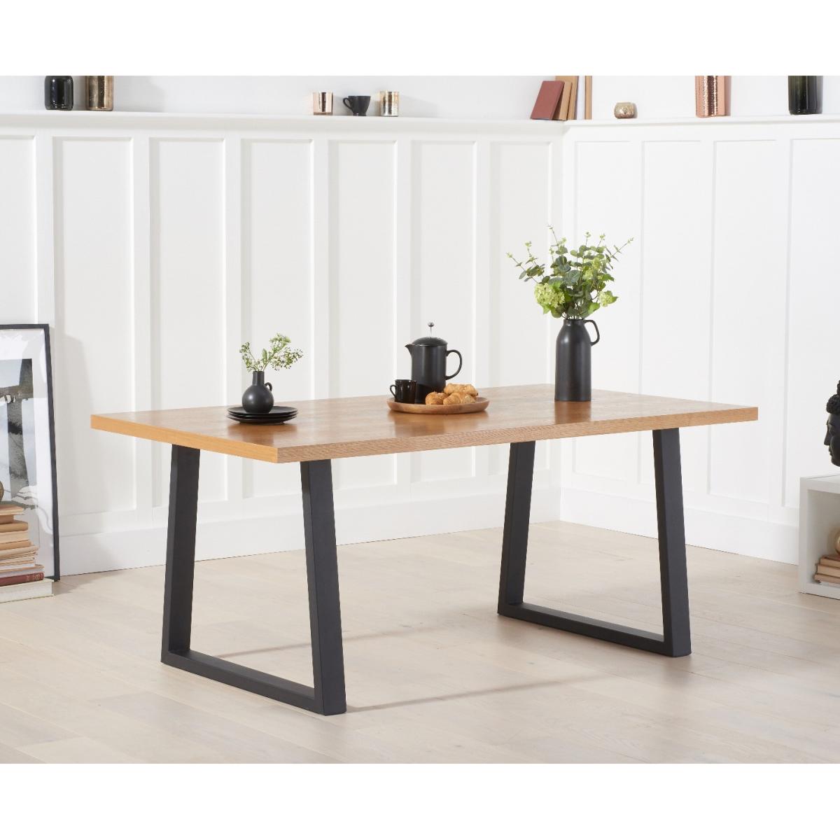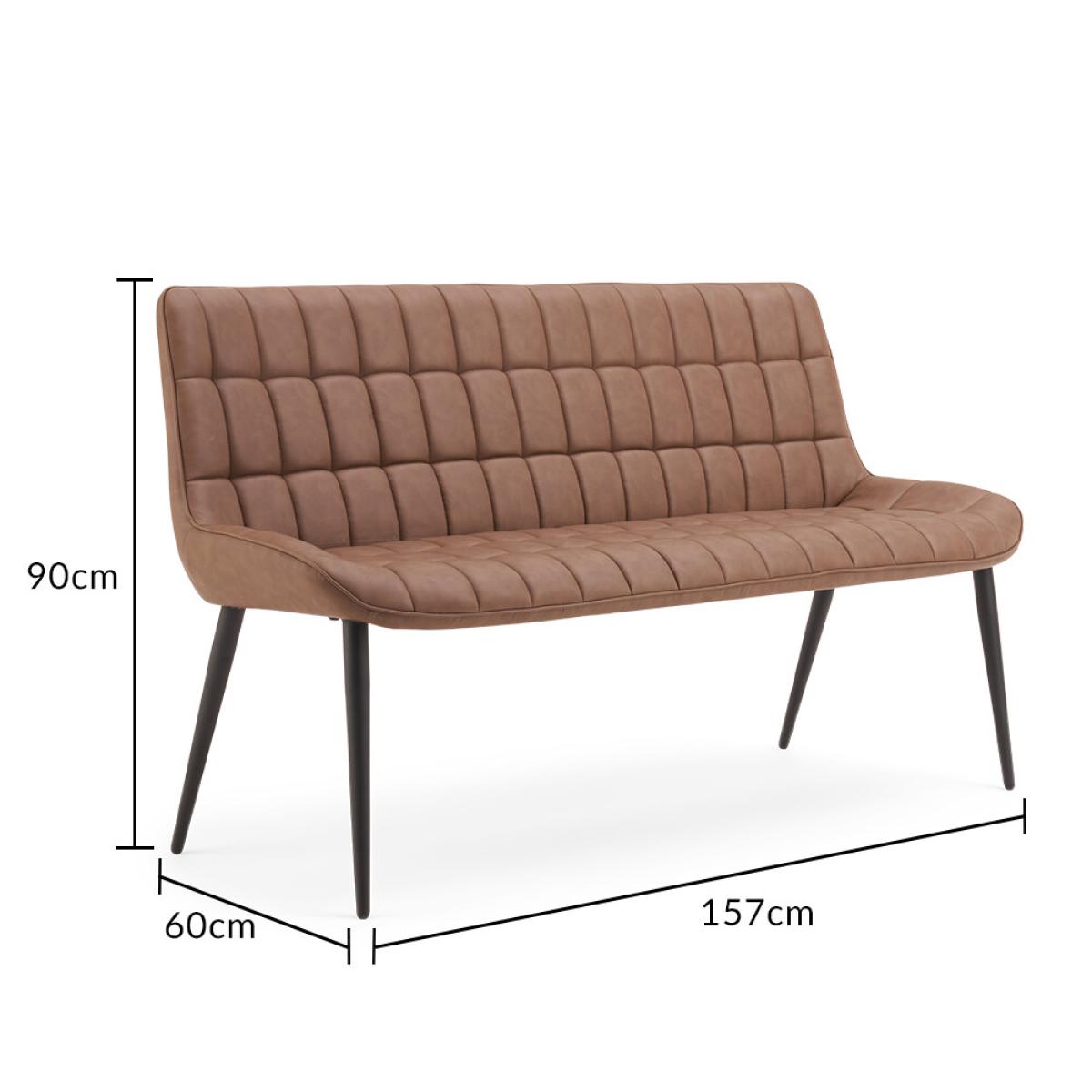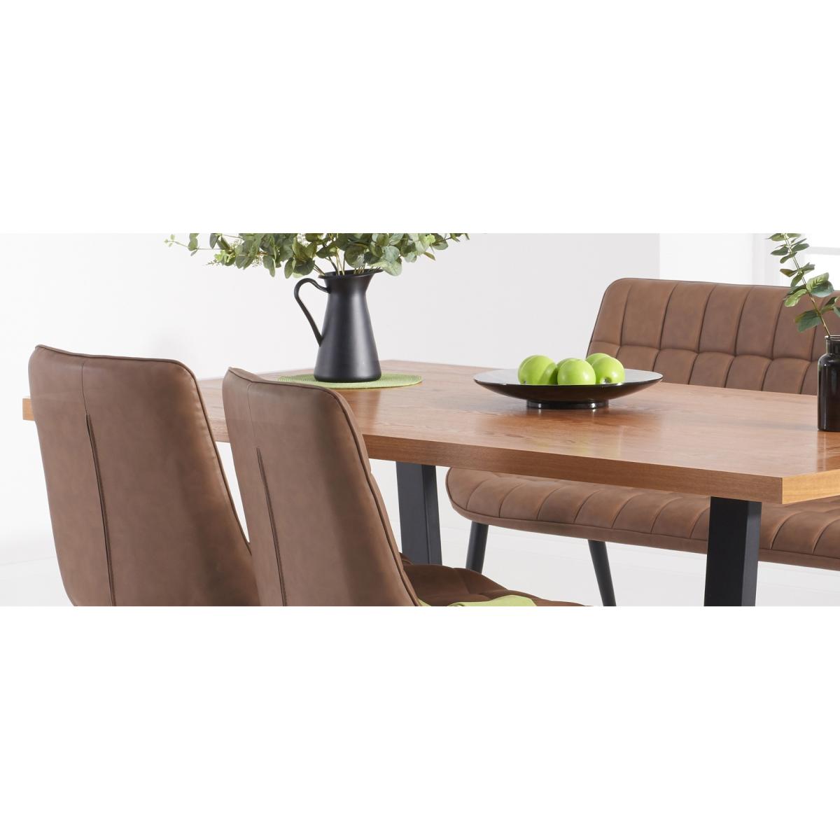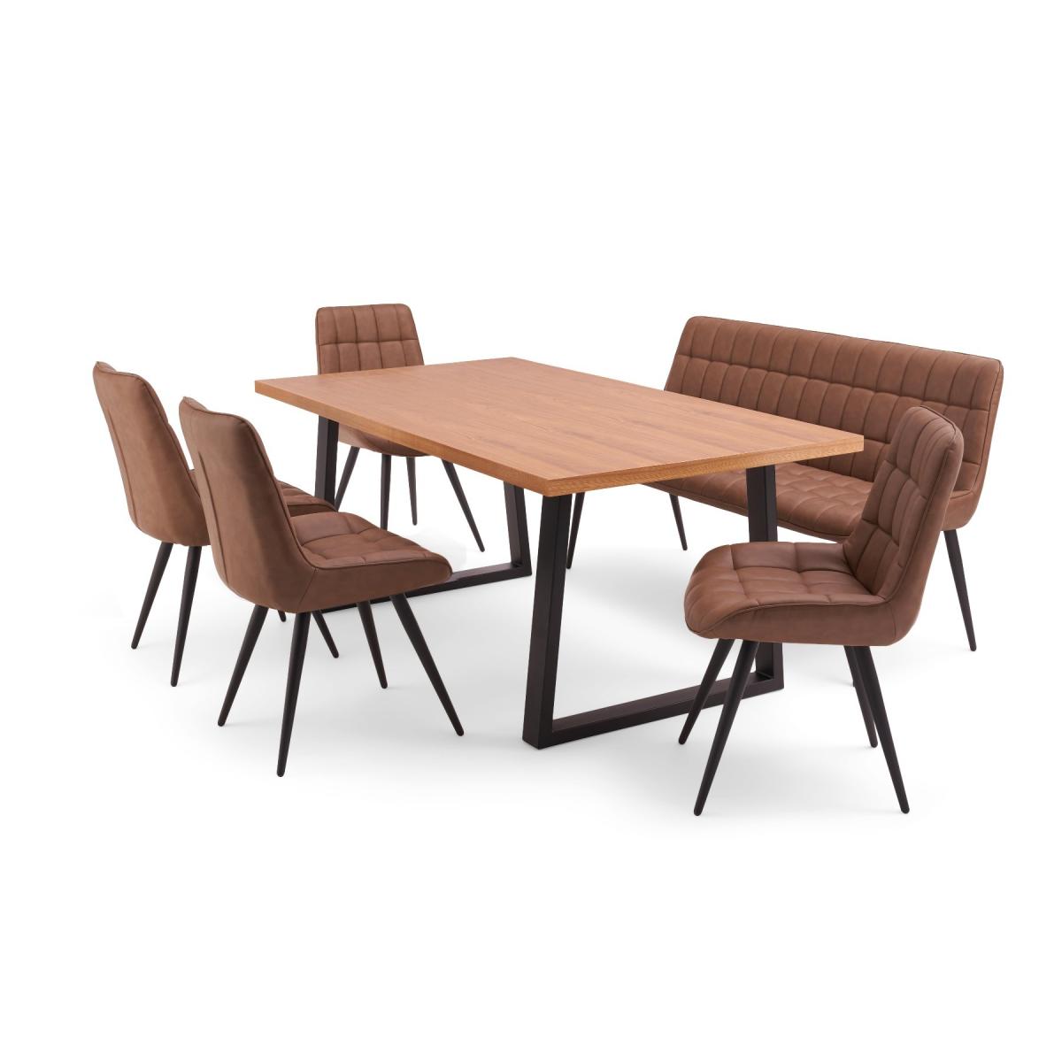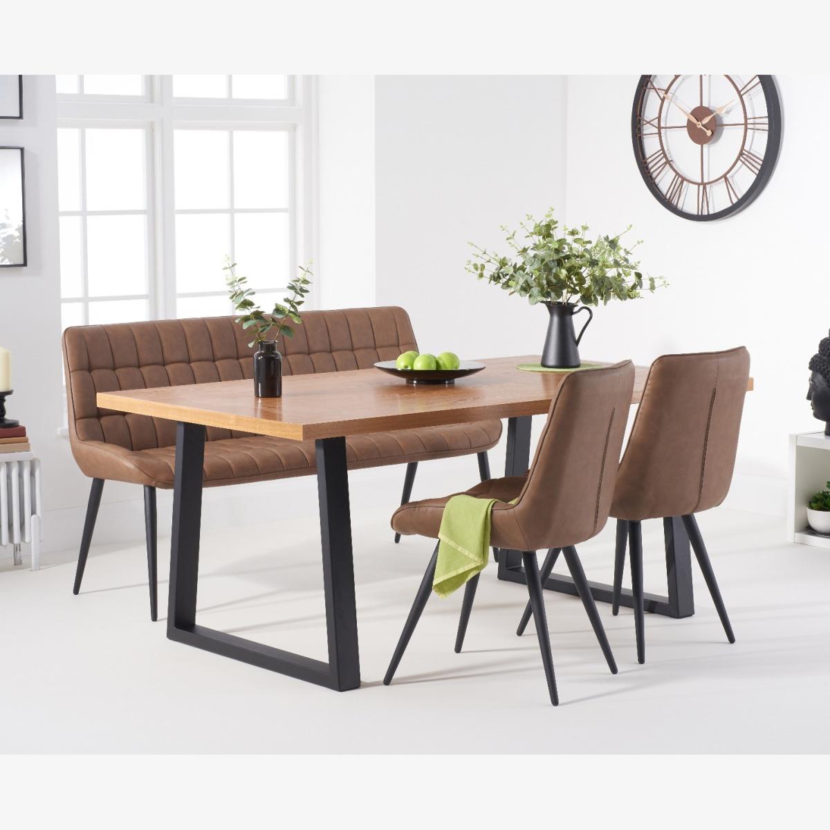 Urban 180cm Ash and Veneer Industrial Dining Table with 2 Brown Larson Chairs with 1 Brown Bench