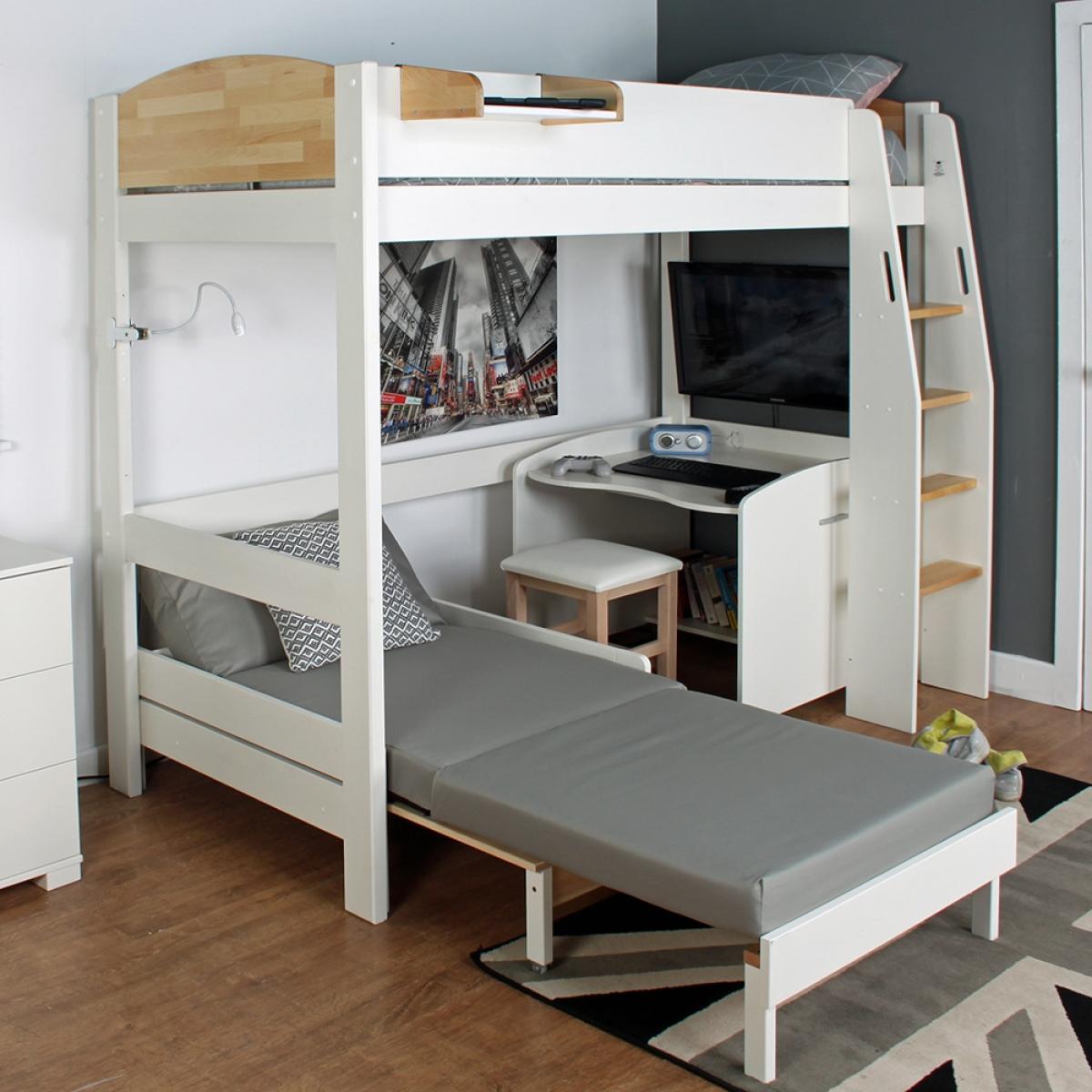 Your youngsters will be lost for hours with this incredible Urban Birch High Sleeper 1 bed. With the birch and white design your kids can pair their bedding and furnishings in a variety of colour combinations to create a super grown up space. The Urban High Sleeper 1 also includes a desk and chair bed that can be hidden away and arranged however they wish! With castors on the base of the desk for easy moving, and a sofa style bed, there are no restrictions, they can study and play wherever they feel like. Whether they tuck themselves in their own gaming hideaway or spread themselves out around the room, this is the perfect studying, socialising and if you're lucky. Sleeping experience! If you're feeling brave and you're preparing for a sleepover, just simply extend the chair bed out and your kids are ready to go, but be careful they might never want to leave! This brilliant bed has some optional extras to choose from, a clip-on shelf for bedtime beverages and don't forget your bendy bunk light!.