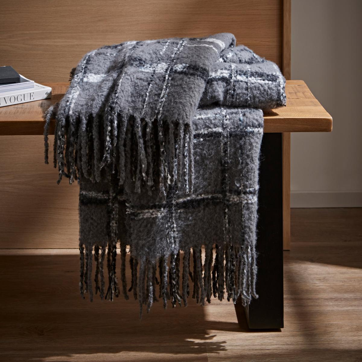 Urban Check Mohair Throw Grey