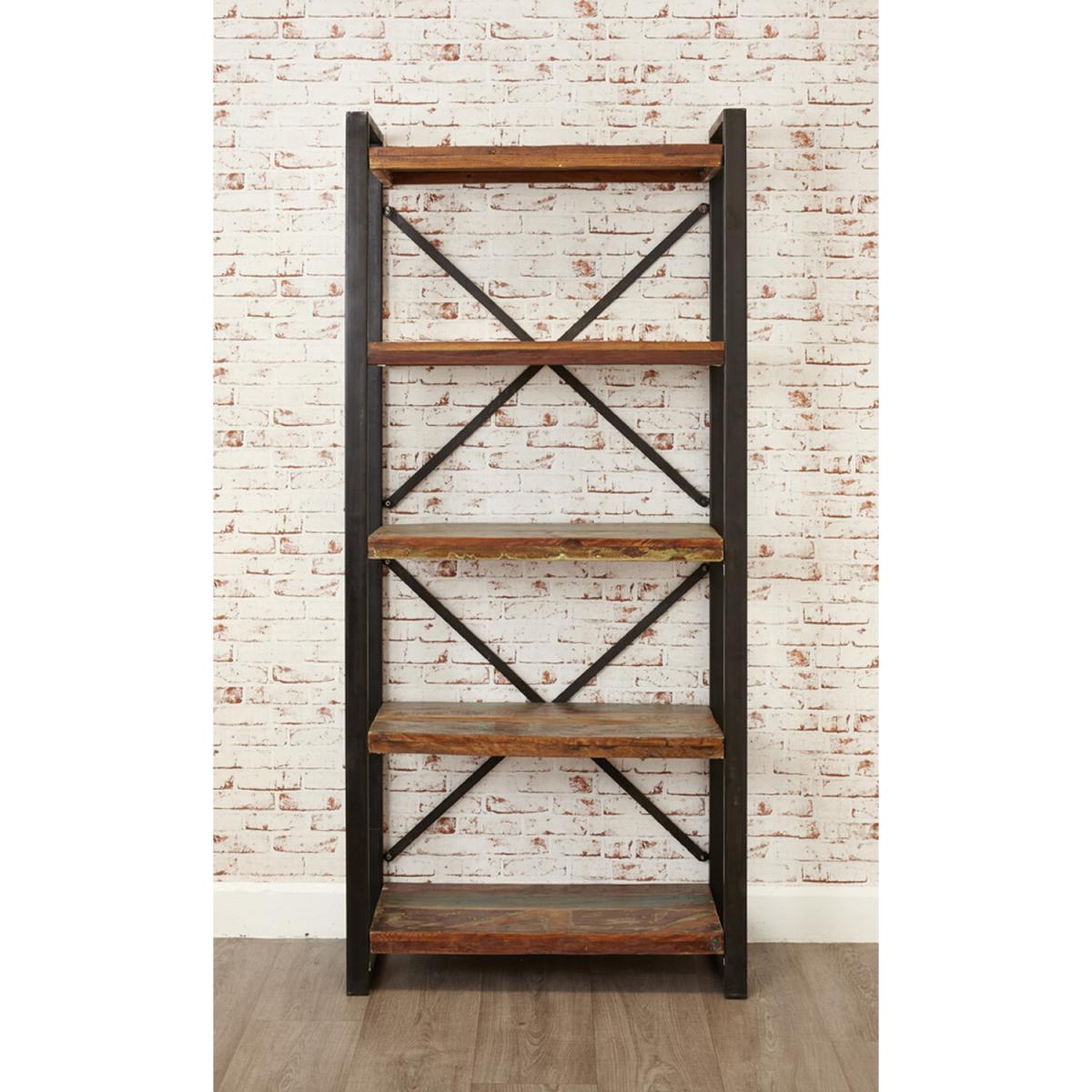 This bookcase is made from reclaimed Indian wood. The chunky shelves are held together with a steel structure making it a long lasting and robust piece of furniture. The grain and colour of the wood is protected using a clear lacquer to give sheen and longevity.