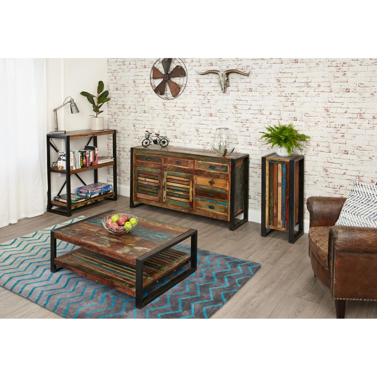 I’m a fan of this low Urban Chic shelf because the mix of worn-effect timber and slim black metal frame brings a relaxed industrial feel without looking heavy. It works especially well in loft-style living rooms, contemporary studies or even as a media unit in a minimalist lounge. To style it, keep each tier balanced: a couple of books on one side, a low pot plant or small sculpture on the other. Use woven baskets on the bottom shelf to hide clutter, and leave some breathing space so the texture of the timber really stands out.