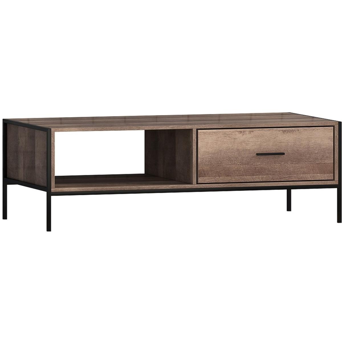 This industrial style coffee table has a reclaimed wood effect and a black metal frame to enhance its rustic appeal. Practical as well as attractive, this Coffee Table has 1 large drawer and large open storage or display shelf. Attention to detail with matching drawer interior and back panel. Delivered flat-packed for home assembly.