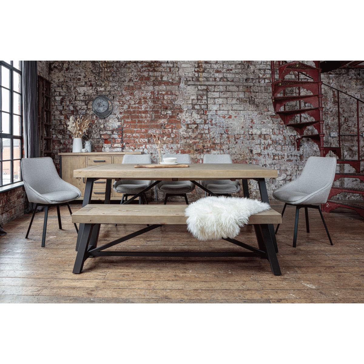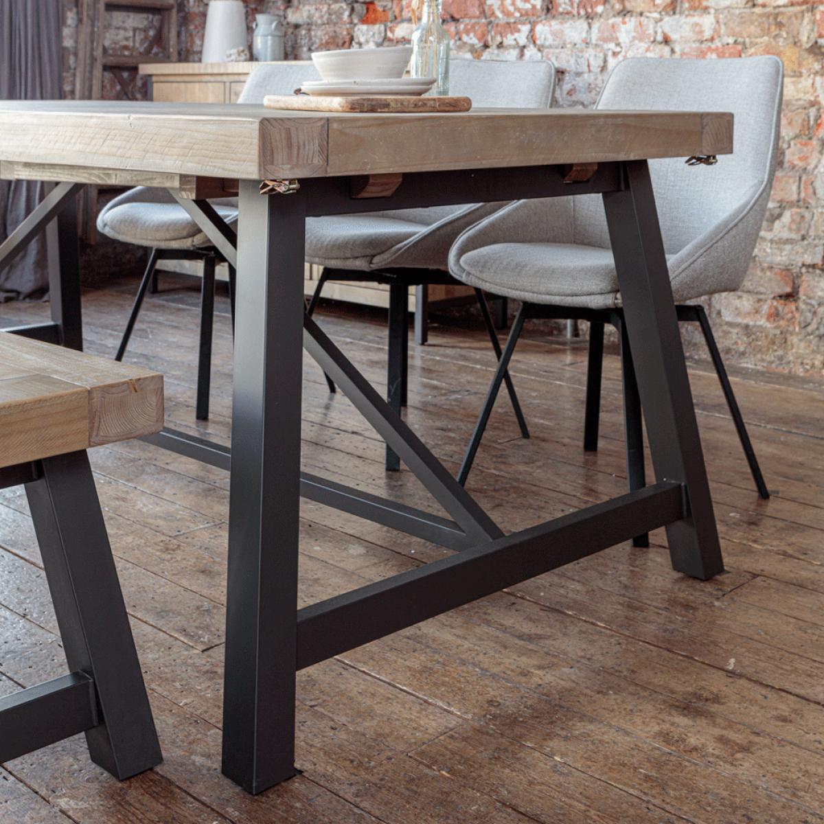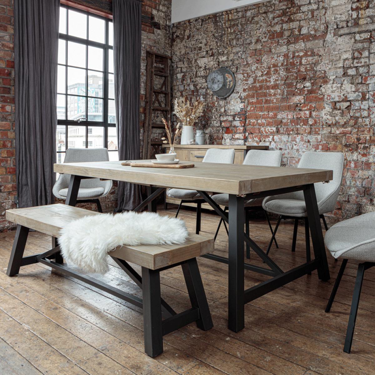 Introduce some industrial style to your dining room with The Urban Extending Dining Table. The Urban 2 Metre Extendable Dining Table boasts finishes of gorgeous tactile lacquered driftwood pine which excellently combine with dark grey gun metal stainless steel bases. Undeniably industrial in style with more than a pinch of rustic charm, this dining table is bound to slot into many homes with ease. The driftwood brown tone of the chunky pine surface is created from a lacquering process, meaning it will face the day to day with ease. The table legs are dark grey gun metal but have also been powder coated to prevent damage over time. This pine table is also able to extend with the. Urban extension leaf, sold separately. With one inserted you can add two more diners. The table is available as a. 1. 6 metre option. , also. Unlike many other extendable dining tables that have a central extension leaf, the extension for this table adds onto the end, therefore not affecting the aesthetic of the table. Central leaf extending dining tables, by their very nature, have a join running down the middle of the table’s top, which you don’t have on this set. To extend this table you simply slot in one or two extending leaves into the channels at either end and fasten underneath to secure. Discount available if purchased as part of a dining set. Why not check out some of the other products available in the. Urban Range.
