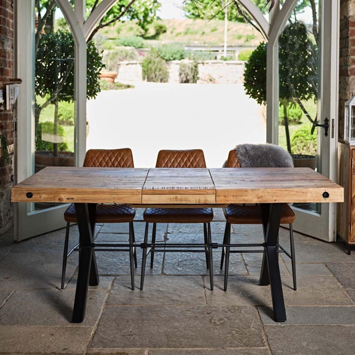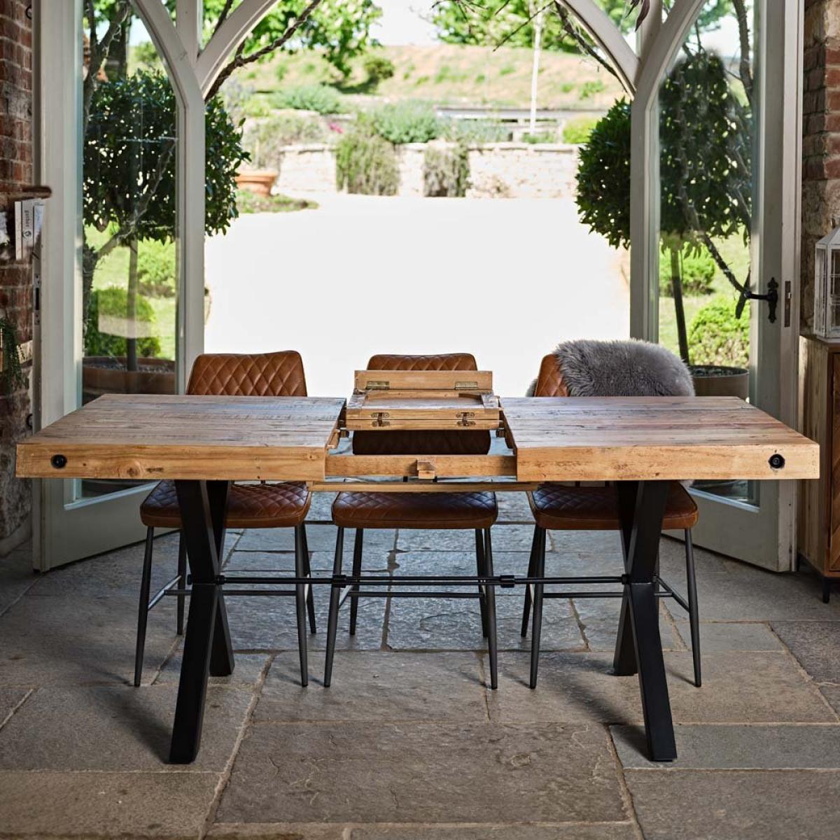. The Urban Extending Dining Tableby Baker Furniture is a practical piece that would make a statement in any dining area. As part of the Urban collection the tabletop is made using reclaimed timber, sanded and finished so it39;s smooth to the touch but showcasing its history in the unique marks and wood grain. The solid metal legs are cross formed and finished with a black coating. This would be the perfect dining table for any home that wants that industrial edge. Team with the rest of the Urban Collection to complete the look. Please note: Reclaimed wood has a history and as a result its own character and uniqueness. It may have been used for buildings and structures over many years. It is a rustic material and no two pieces are the same. Random markings holes are a standard feature of reclaimed wood. *Dimensions: W140cm x H76cm x D90cm *Made with reclaimed timber *Metal legs with black coated finish *Simple self assembly * This item is made from reclaimed timber and may show natural signs of its previous life..