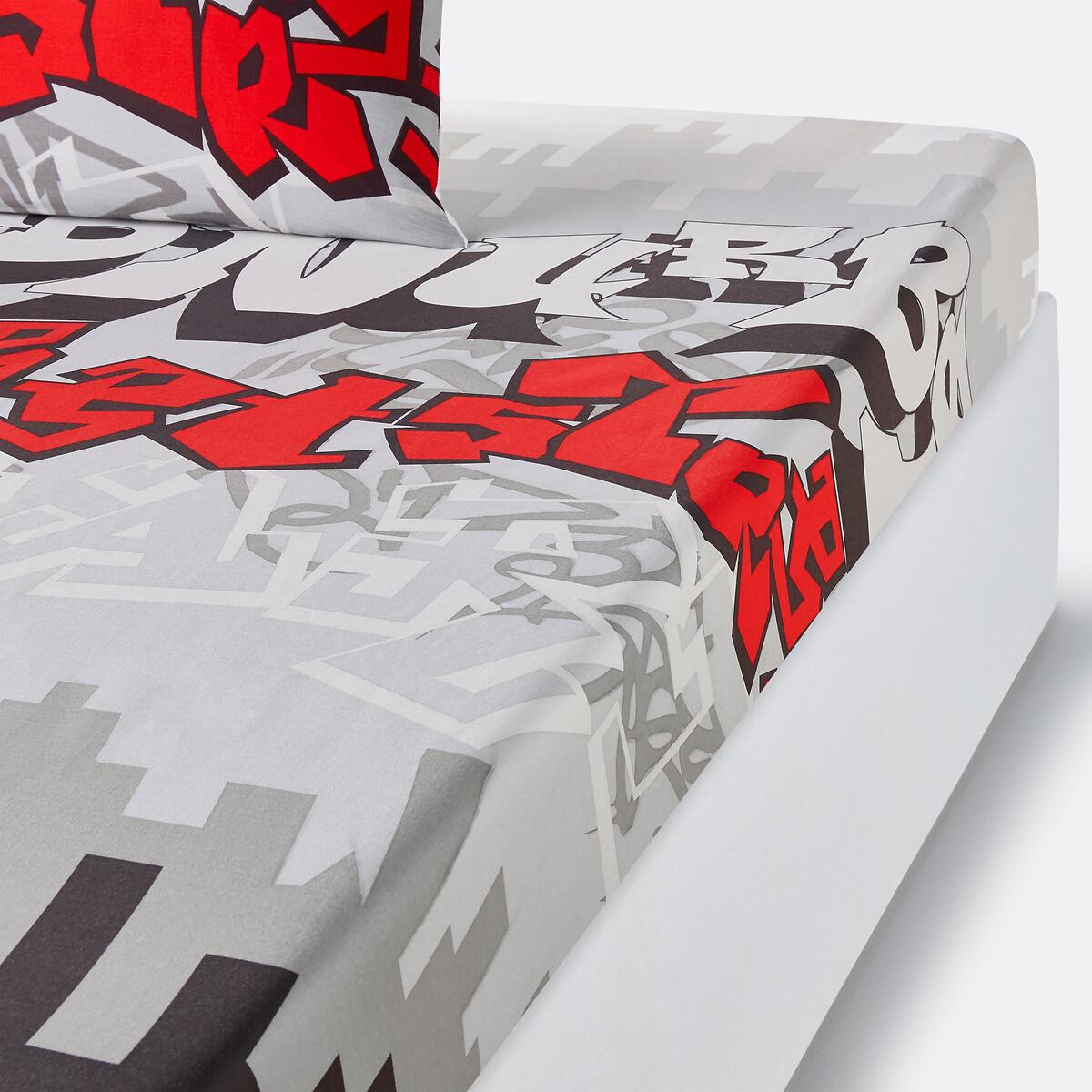 Urban Graph Fitted Sheet. Urban art is just as amazing as ever. ! Product Details • 100% cotton • • For mattress height 25cm. Care Advice • Machine washable at 60°C • By washing your laundry at 40°C instead of 60°C, you limit energy consumption. Dimensions • 90 x 190cm: Single • 140 x 190cm: King • 160 x 200cm: King • OEKO-TEX® Standard 100. Standard 100 certification by OEKO-TEX® tests textile products for harmful substances via an independent, international label.