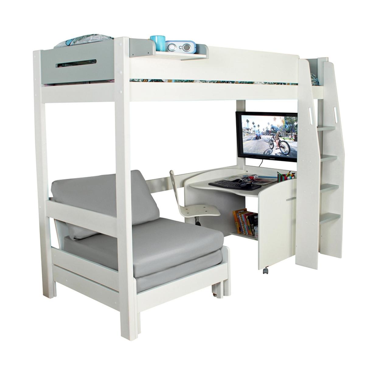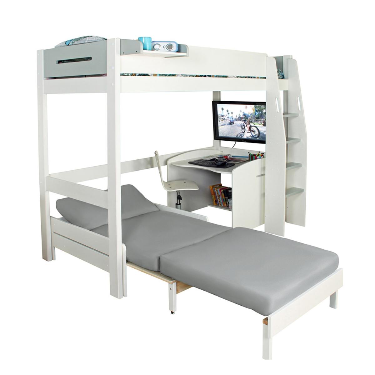 Your youngsters will be lost for hours with this incredible Urban Grey High Sleeper 1 bed. With the cool grey and white design your kids can pair their bedding and furnishings in a variety of colour combinations to create a super grown up space. The Urban Grey High Sleeper 1 also includes a desk and chair bed that can be hidden away and arranged however they wish! With castors on the base of the desk for easy moving, and a sofa style bed, there are no restrictions, they can study and play wherever they feel like. Whether they tuck themselves in their own gaming hideaway or spread themselves out around the room, this is the perfect studying, socialising and if you're lucky. Sleeping experience! If you're feeling brave and you're preparing for a sleepover, just simply extend the chair bed out and your kids are ready to go, but be careful they might never want to leave! This brilliant bed has some optional extras to choose from, a clip-on shelf for bedtime beverages and don't forget your bendy bunk light!.