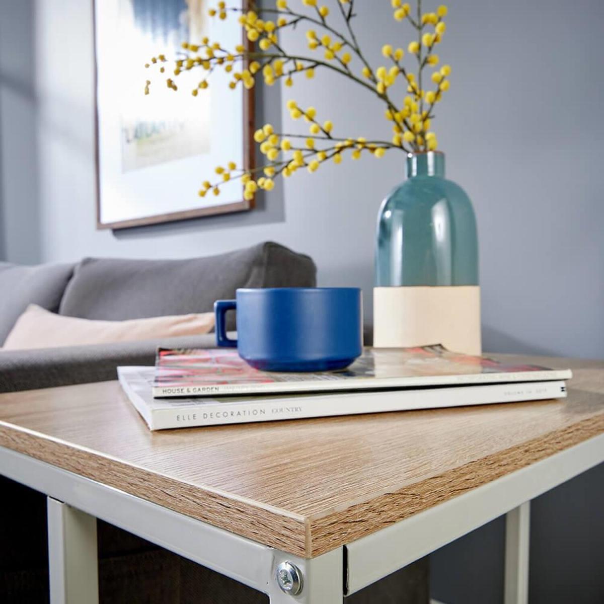 I love this little side table for its clean, modern look and versatile appeal. The light oak finish adds warmth, making it suitable for both contemporary and rustic interiors. It pairs particularly well with grey or neutral-toned sofas and can be styled with small decorative objects, such as candles, books, or a statement vase, to create a lived-in feel. Practical tips include using it as a cosy spot for a reading lamp or to hold your morning coffee. Its simple, sleek design makes it a flexible addition to living rooms or bedrooms, especially those aiming for an understated, functional aesthetic.
