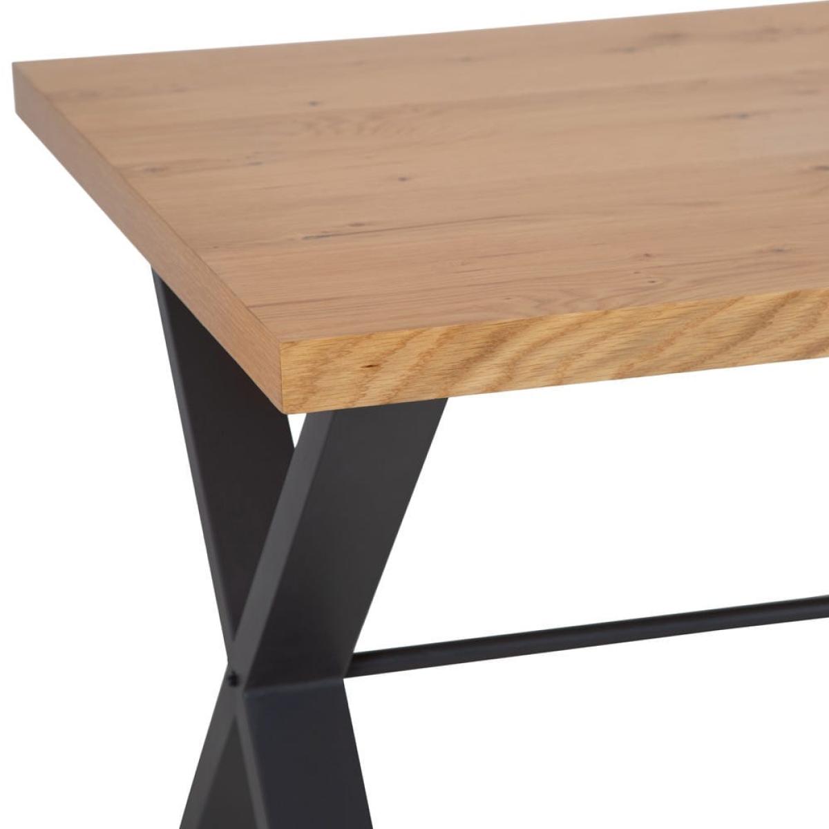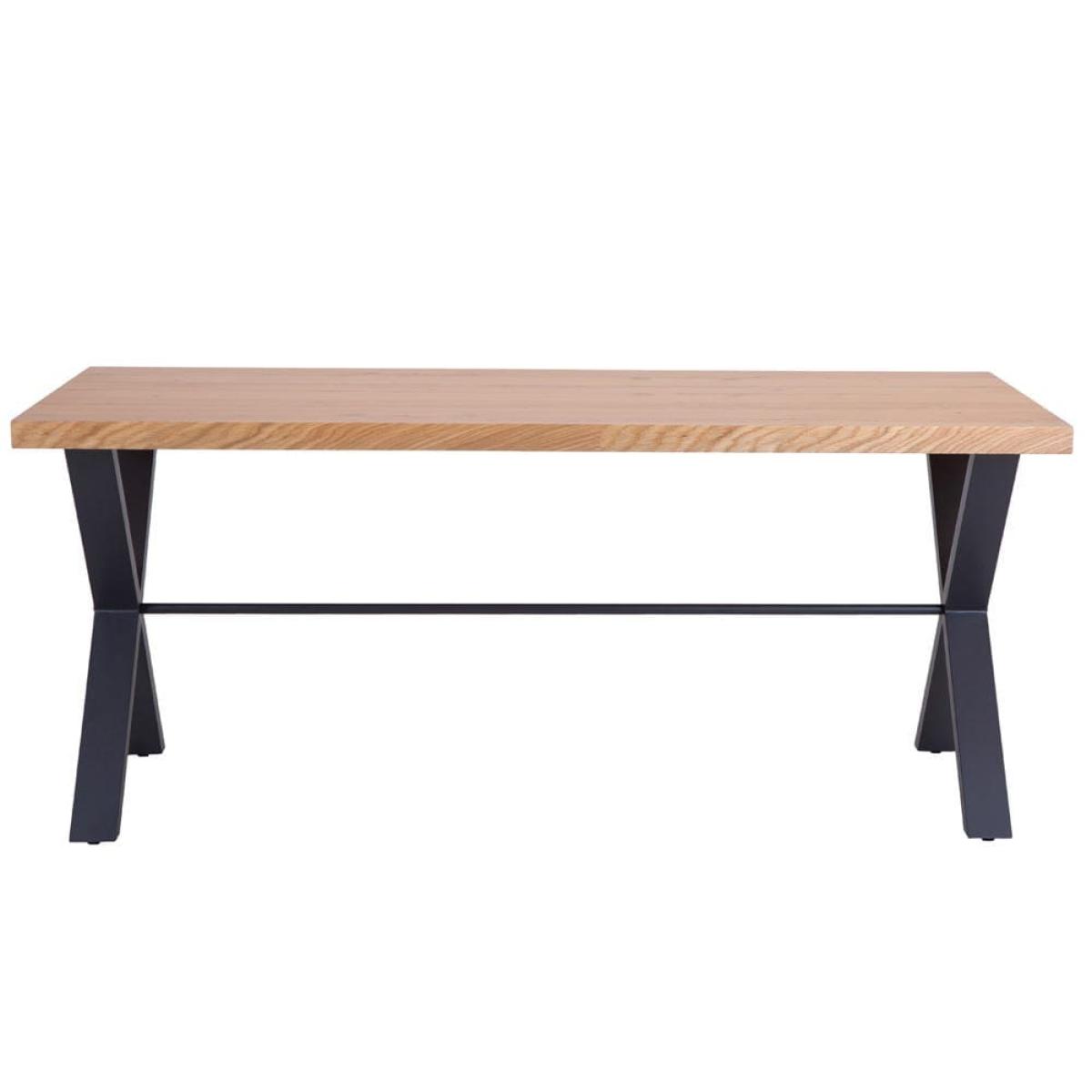Even though you’re not on holiday, you can still introduce a sense of picnicking to your mealtimes with our Urban industrial oak 1. 8m dining table. With stylish crossed legs and a wooden top, when you close your eyes you could almost believe you’re sipping your drink in a sun-drenched park. Your friends will appreciate it too, as there’s enough room for plenty of them to sit around thanks to its 1. 8 metre length. And with a dark grey steel frame and bolstering support rail, it’ll cope with all the dishes you place on top too.