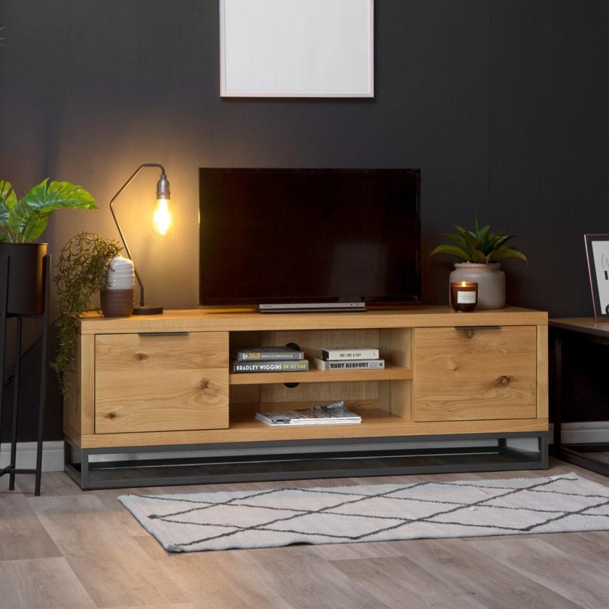 After a tough day at school and work, relax with a family gaming night – and don’t forget plenty of snacks for sustenance. Our Urban industrial oak large TV unit makes it easy to keep all your equipment in one place. It’s made from solid wood with a sturdy 1. 5-metre surface for your TV. Below this, there are two open 60cm shelves for keeping your consoles – these have pre-drilled holes for cables to be stashed neatly. This light-coloured unit also has two 40cm drawers for games, DVDs and controllers. Its sturdy construction and dark grey metal frame can withstand any bumps if the night gets rowdy.