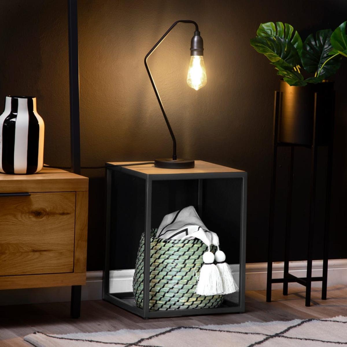 Settle in for a relaxing afternoon on the sofa. Your TV remote, mug of coffee and latest novel are all conveniently to hand when you use one of our Urban industrial oak side tables. Place it next to your favourite chair to add panache to your living room set-up. Its design blends two distinct aesthetics. The solid wood top is reminiscent of traditional furnishing, while the clean lines of its steel cuboid frame gives it a sense of modernity. We’ll deliver the table fully assembled so it can take its place straight away.