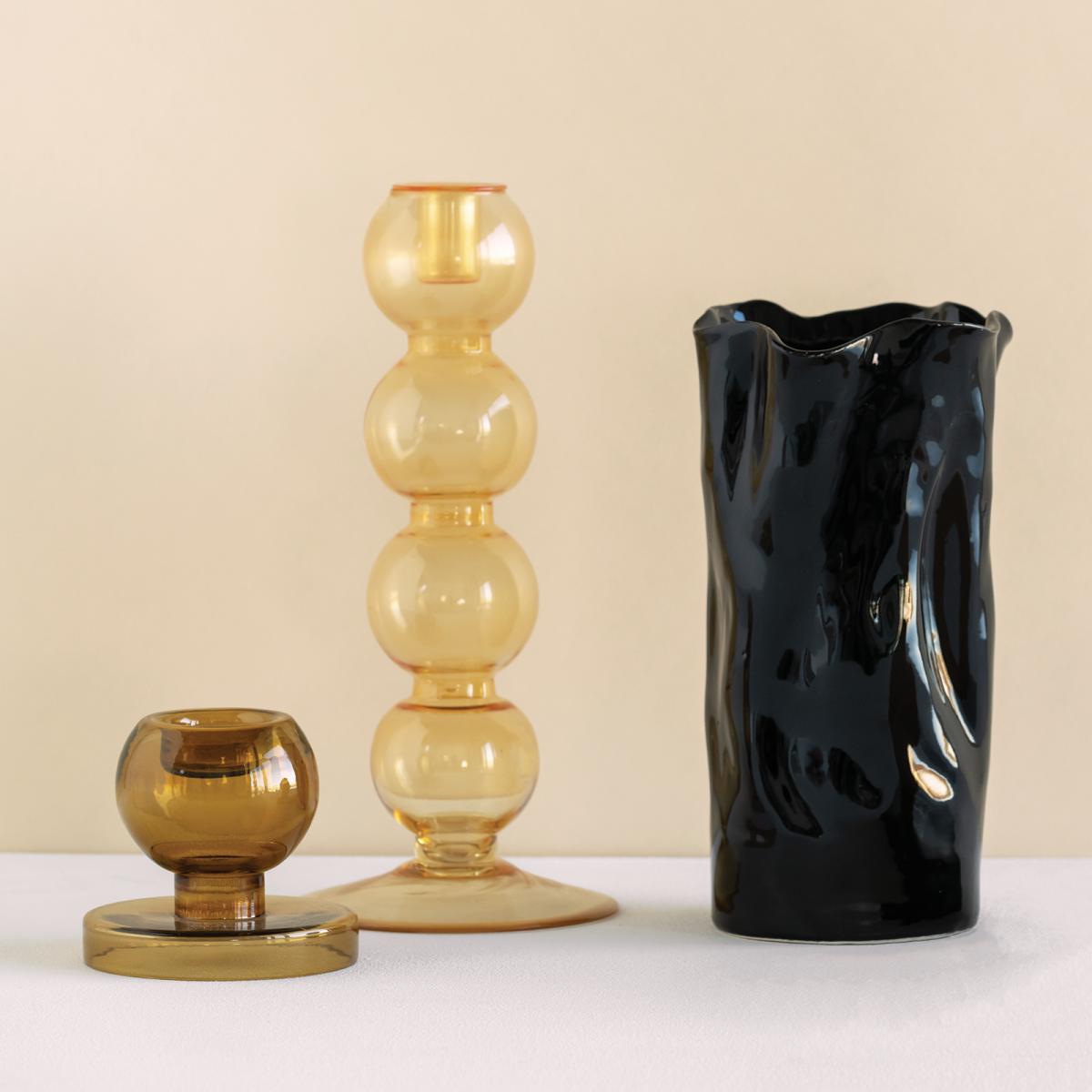 I love this candle holder for its simple yet tactile design, which combines natural wood tones with a contemporary glass form. It works well in both modern and rustic interiors, adding warmth and texture without overwhelming the space. For styling, it’s best displayed as a standalone piece on a coffee table, sideboard, or mantelpiece, especially in settings that embrace natural materials and earthy colours. Practical tips include grouping it with other candle holders of varying heights for an interesting vignette or using it with pillar candles to create atmospheric lighting in cosy corners. Its versatile size means it can adapt easily across different areas, making it a useful and stylish addition to many interiors.