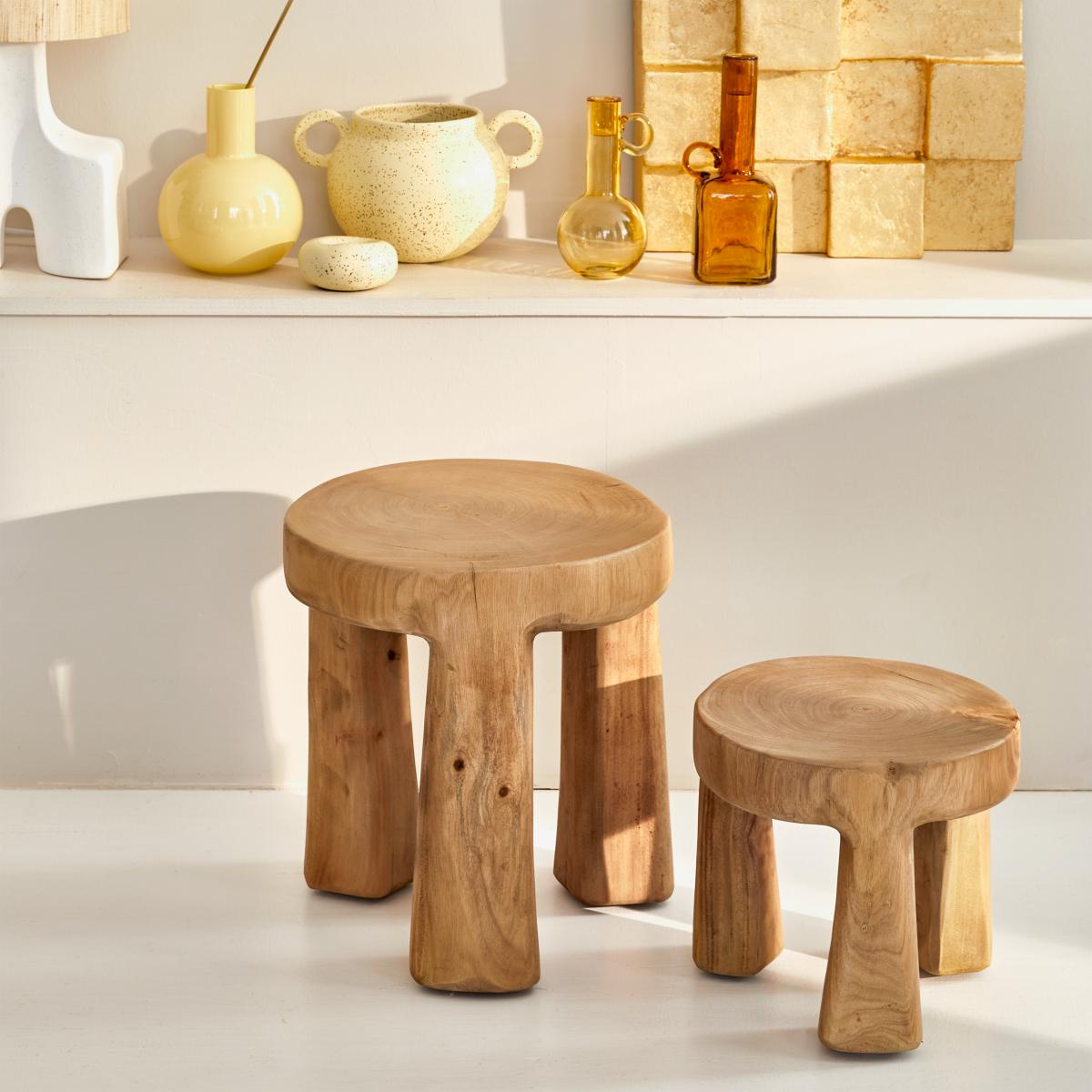 This little stool is a versatile piece perfect for adding a natural touch to a variety of interiors. Its simple, sculptural design works particularly well in Scandinavian or coastal settings, where neutral tones and minimalism are key. Because of its compact size, it can serve as a footrest, side table, or an extra seating option in living rooms, bedrooms, or even outdoors on a patio. Practical styling tip: pair it with textured textiles or layered rugs to highlight its organic feel, and consider placing it near upholstered furniture to bring a warm, earthy vibe to the space. Its natural wood finish makes it easy to incorporate into both contemporary and rustic schemes.