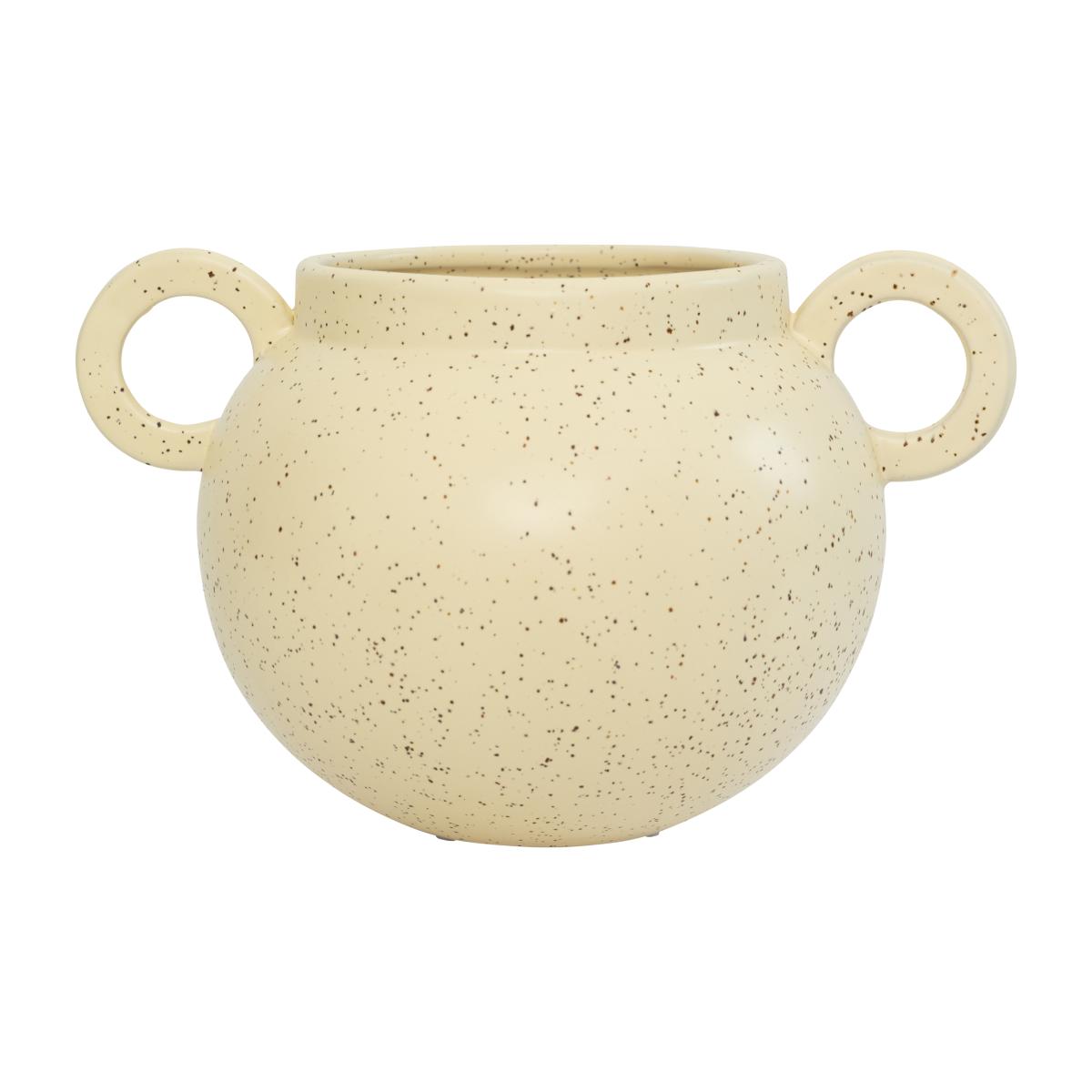 I love this piece because it combines simplicity with tactile appeal, making it versatile in many settings. The IKigai vase's neutral French vanilla tone and speckled finish work especially well in understated, minimalist interiors or Scandinavian-inspired schemes. Its rounded shape and unique handles add an element of interest without overwhelming a space. For styling, I recommend pairing it with fresh seasonal blooms or dried botanicals for a natural touch, placing it on a sideboard, windowsill, or open shelf to showcase its form. It also works beautifully as a standalone decorative piece in a contemporary or rustic setting, adding warmth and a subtle point of interest.
