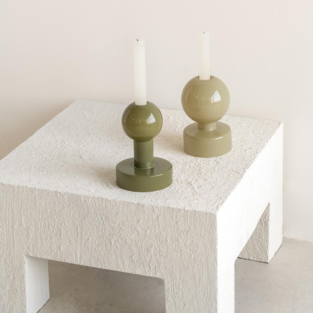 I love this green spray candle holder for its simple yet contemporary shape, which adds a subtle touch of colour without overwhelming a space. It works particularly well in modern, minimalist interiors or within a natural-inspired scheme, where its earthy tone complements other textures like wood, stone, or lush greenery. For styling, consider pairing it on a dining table as a centrepiece with candles of varying heights, or using it on a shelf or mantelpiece to create visual interest. Its versatile size makes it easy to group with other candle holders or decorative objects to craft a layered, thoughtfully curated look.