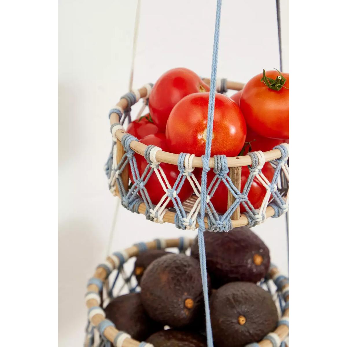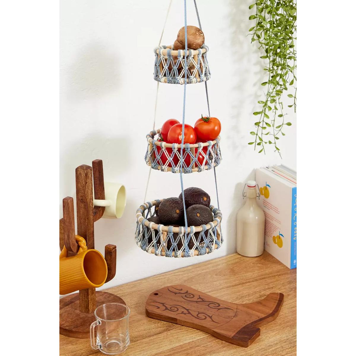 Wood and cotton netted three-tiered hanging basket, found exclusively at UO. Three concentric baskets in a tiered construction, perfect for displaying fruit and plants in the kitchen with cotton net for base and edges with rounded wooden structure. **Content + Care** \- Cotton, Rattan \- Wipe clean