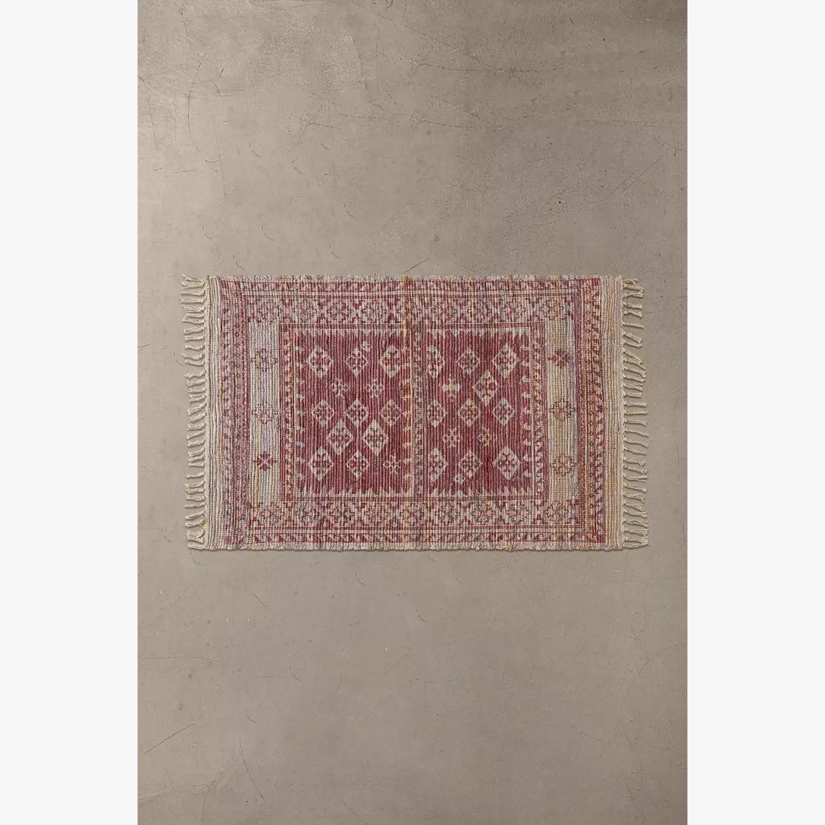 Faded vintage-style rug for adding depth and print to your favourite space. The Ari rug features a handwoven style in a textured cotton fabrication, complete with tassels at either side and a geometric border print to top. **Content + Care** \- 100% Cotton \- Spot clean **Size** \- 61cm x 91.5cm (2ft x 3ft)