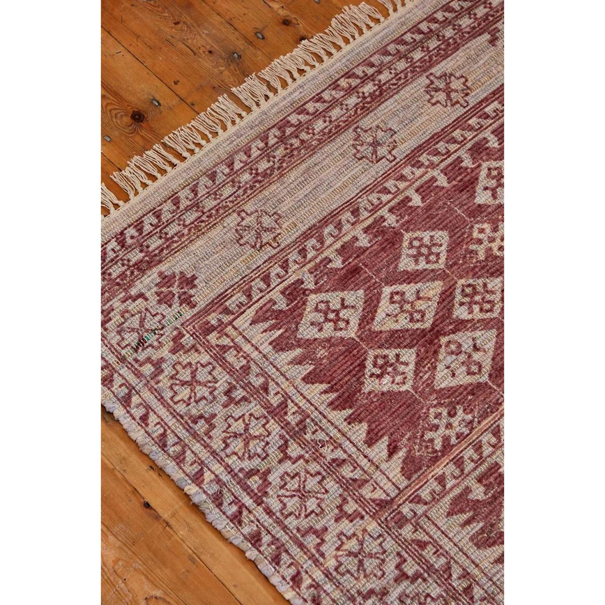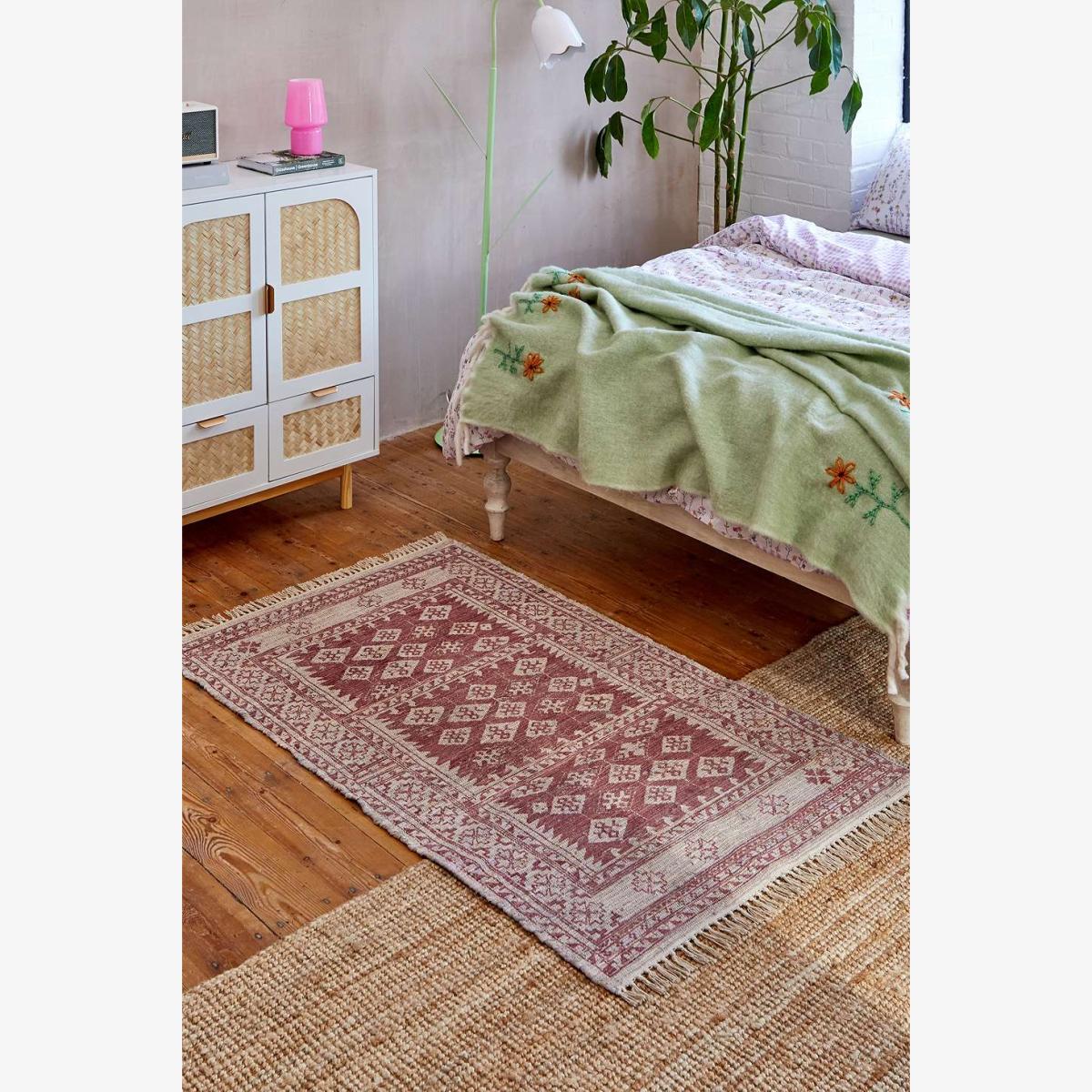 Faded vintage-style rug for adding depth and print to your favourite space. The Ari rug features a handwoven style in a textured cotton fabrication, complete with tassels at either side and a geometric border print to top. **Content + Care** \- 100% Cotton \- Spot clean **Size** \- 91.4cm x 152.4cm (3ft x 5ft)