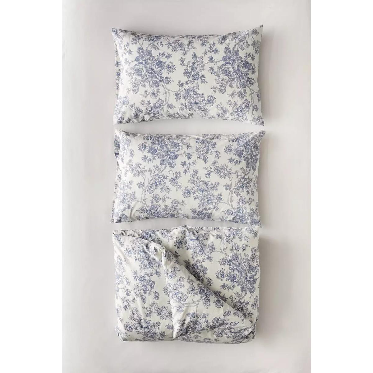 Vintage texture duvet set with a pretty toile print on matching duvet cover and pillowcases. Soft cotton duvet set that's perfect to curl up in, complete with ornate floral detailing. **Content + Care** \- 100% Cotton \- Machine wash **Size** \- Single (includes 1 pillowcase): 135cm (W) x 200cm (H) \- Double (includes 2 pillowcases): 200cm (W) x 200cm (H) \- King (includes 2 pillowcases): 230cm (W) x 220cm (H) \- Pillowcase: 75cm x 50cm