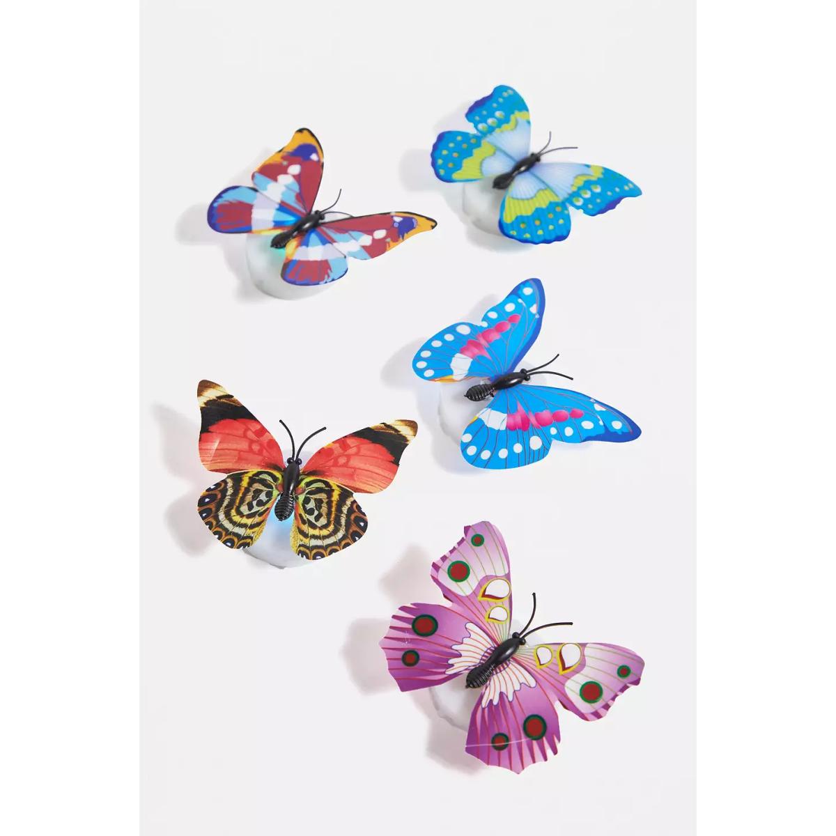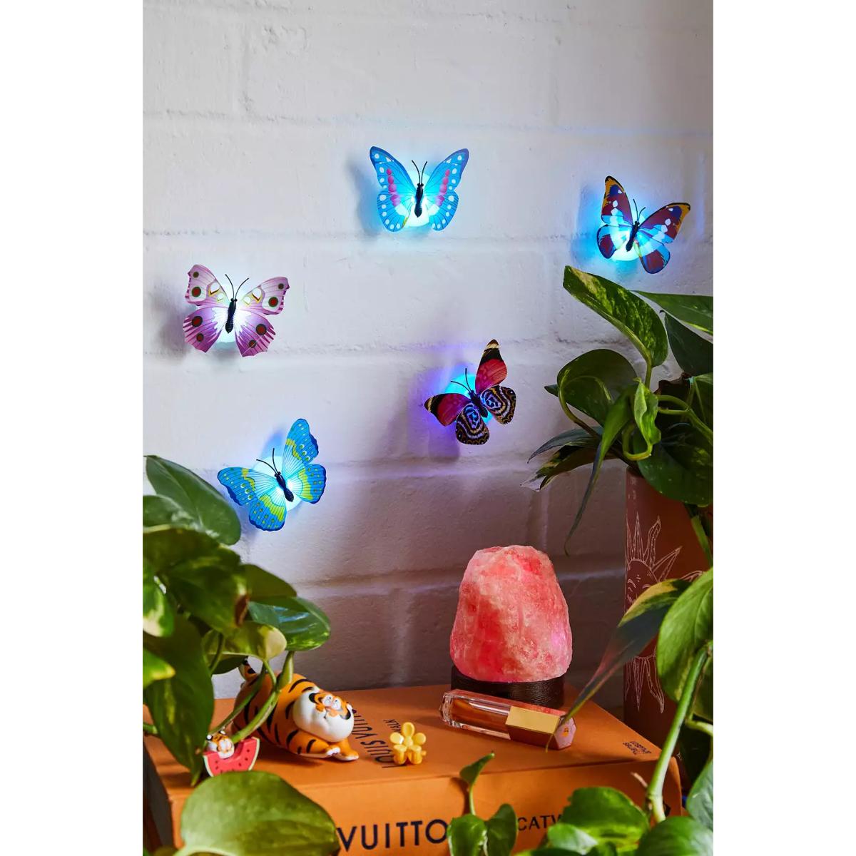 Give yourself butterflies with this multipack of fluttery stick-on LED lights. Backed with sticky adhesive, you can position these colourful butterflies all over your walls and switch on to light up. **Content + Care** \- Includes 5 butterflies \- 50% ABS, 40% Polystyrene plastic, 10% LR1130 button battery \- Wipe clean **Size** \- Dimensions: L: 6.6cm x W: 5.6cm x H: 2cm