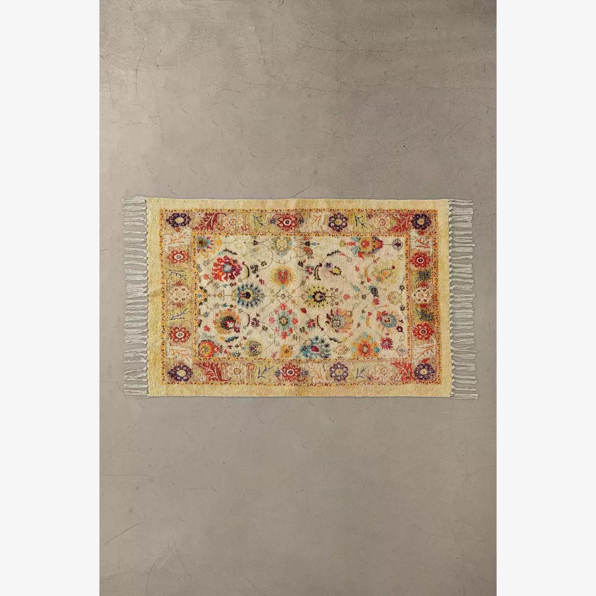 Textured chenille rug with ornate Calliope design features with floral motifs throughout. The soft rug adds a bohemian feel to your space, complete with tassels at either side. **Content + Care** \- 100% Cotton \- Spot clean **Size** \- 61cm x 91.5cm (2ft x 3ft)