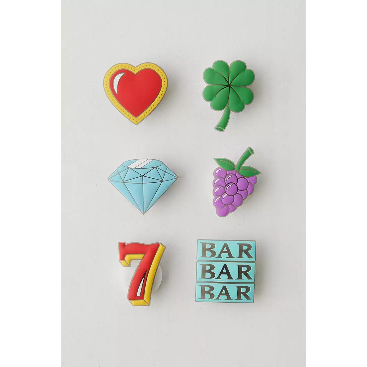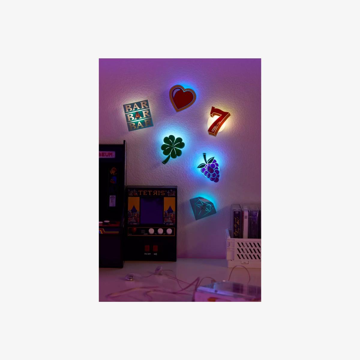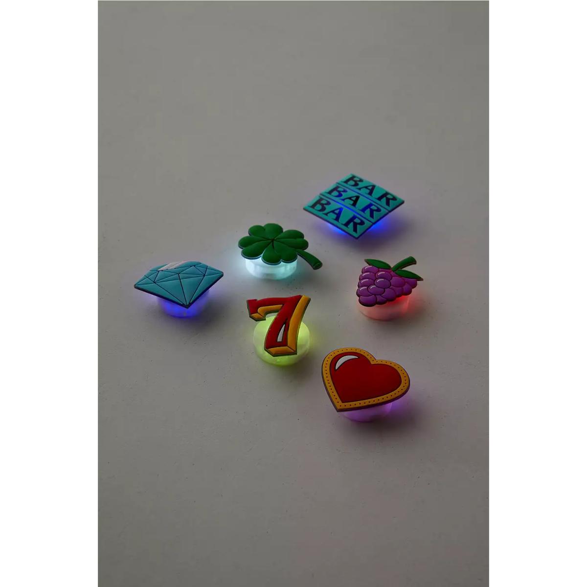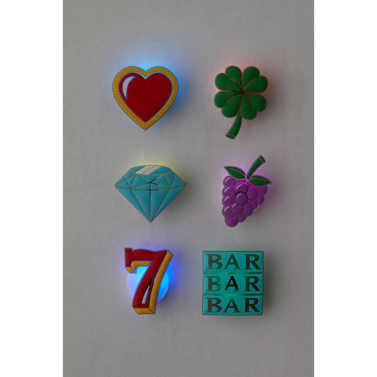 Create a kitsch, casino-inspired space with a pack of six novelty LED light decals. The LED lights feature sticky-back adhesive fastenings to add to any wall, complete with heart, diamond, clover and other motifs in moulded plastic. **Content + Care** \- Includes 6 lights \- 50% ABS Plastic, 40% Polystyrene, 10% LR1130 button battery \- Wipe clean **Size** \- L: 5.6cm x W: 2cm x H: 6.6cm
