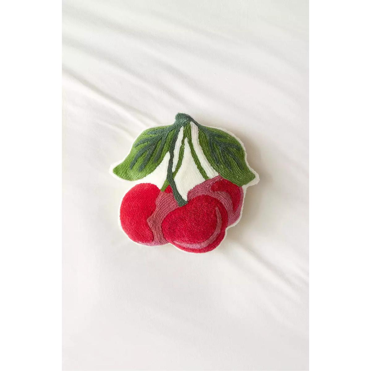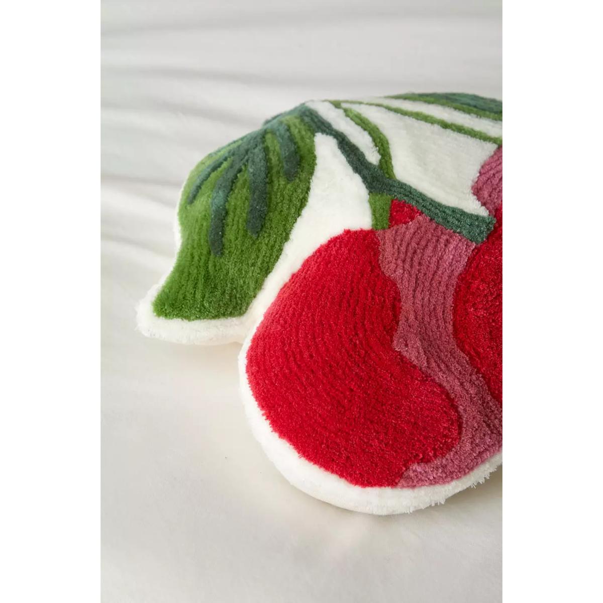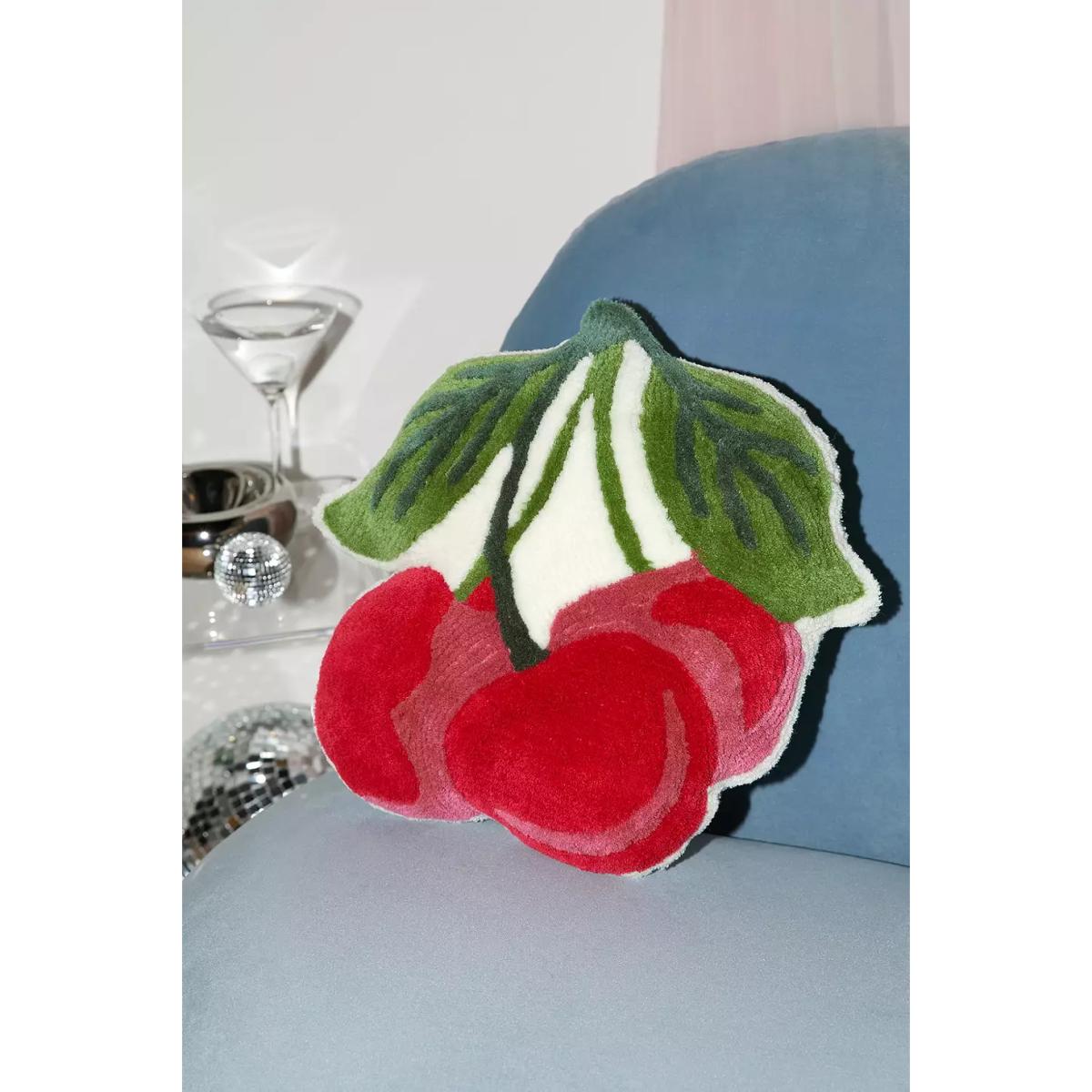 The sweetest cherry motif cushion with a textured finish. Throw this cherry-shaped cushion onto your bed or sofa and rest your head on it's plush filling. **Content + Care** \- Main: 100% Cotton \- Fill: 100% Polyester \- Spot clean