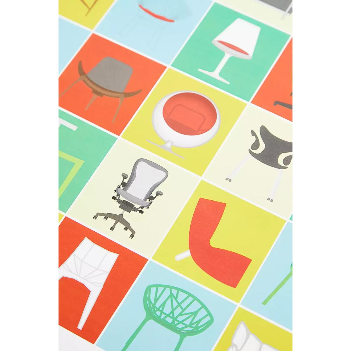 Featuring retro chair designs from through the ages, this funky multi-coloured poster adds colour to any empty wall space. Complete with a white border all around. **Content + Care** \- Paper \- Wipe clean **Size** \- 30cm x 40cm