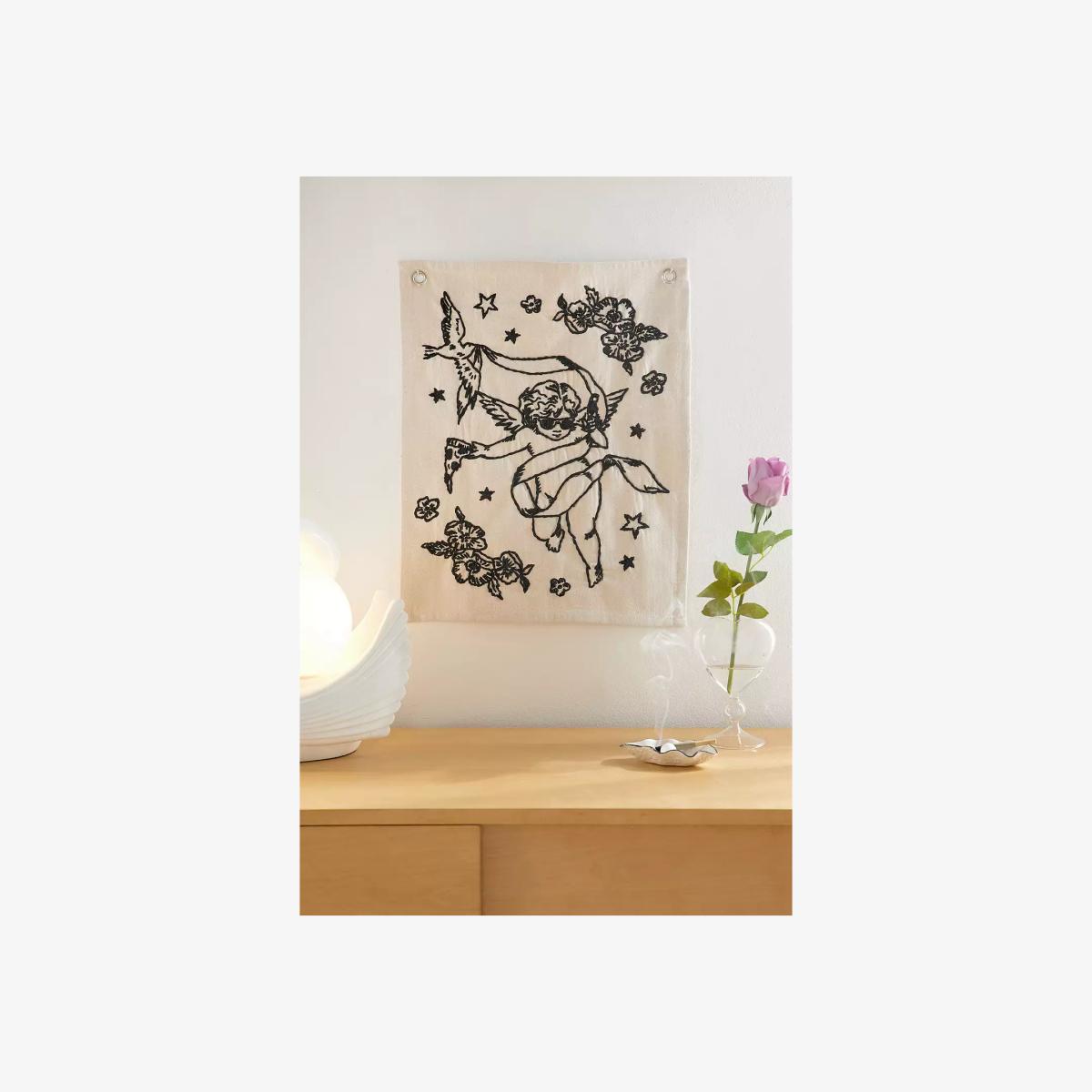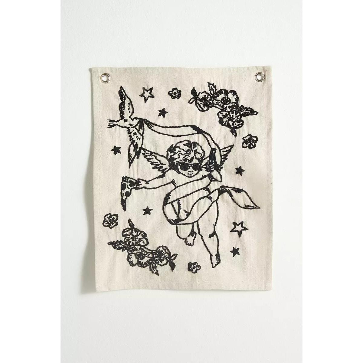 Urban Outfitters Cupid Embroidered Wall Hanging - Black/White ALL