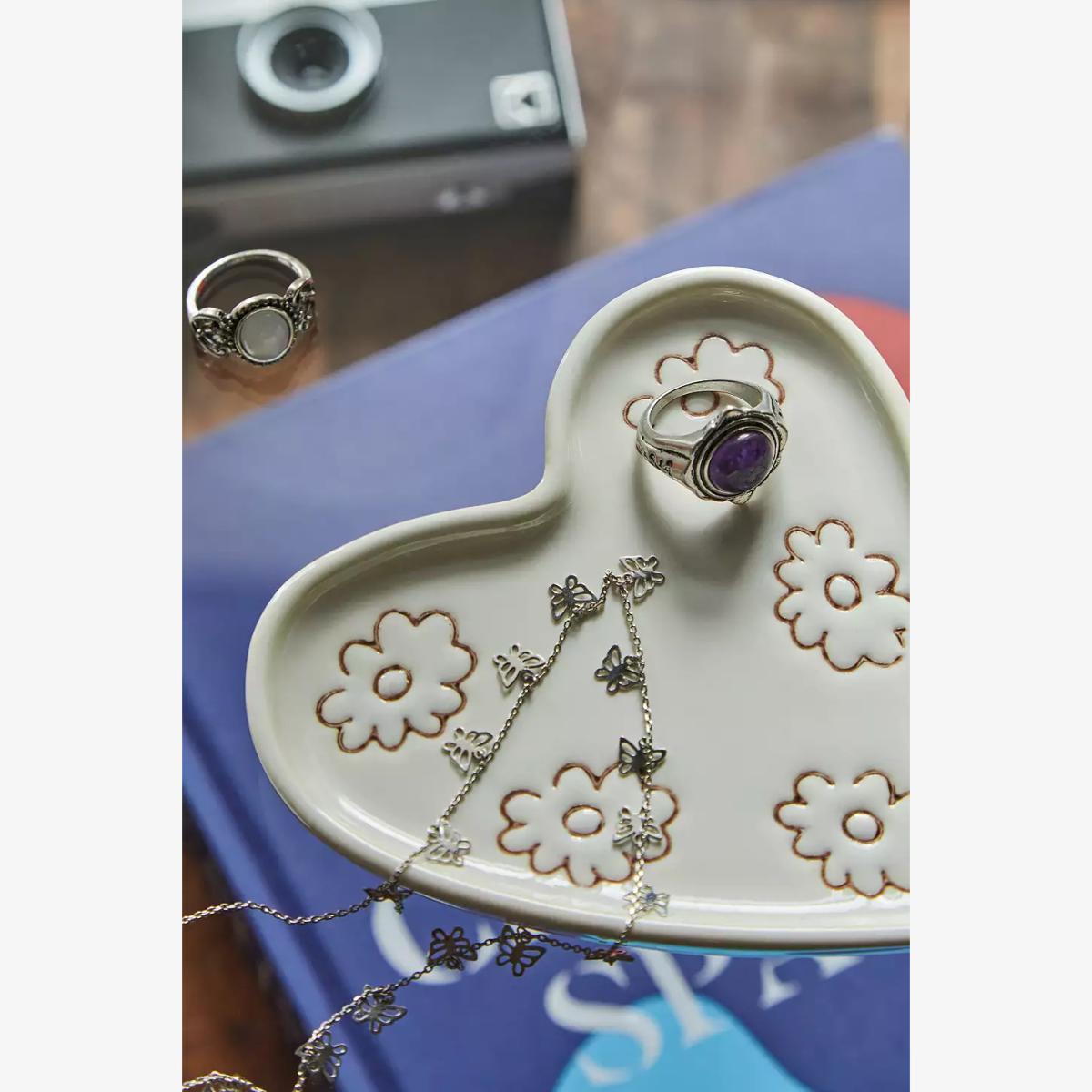 The Urban Outfitters Etched Heart Trinket Tray makes a charming addition to various interiors, especially those with a playful or eclectic vibe. I love how its delicate etched design adds a touch of detail without overwhelming the space. It works well on bedside tables, dressing tables, or as a decorative piece on a mantel. Practical styling tips include using it to organise rings and jewellery, or paired with similar playful accessories to create a curated, personalised look. Its heart shape adds a soft, inviting feel to the room, making it both a practical item and an understated piece of art.