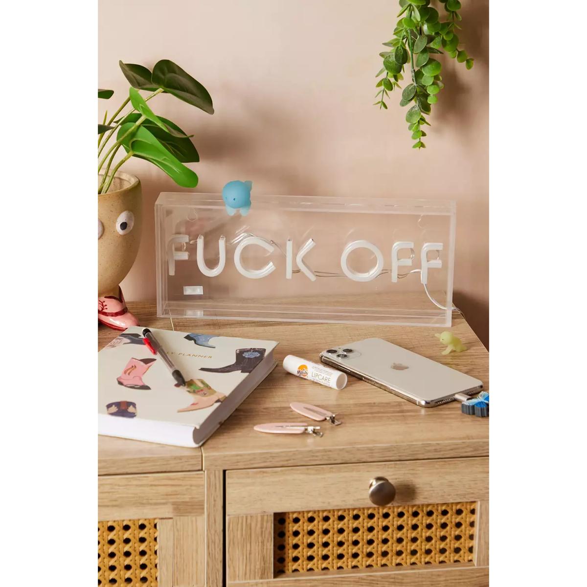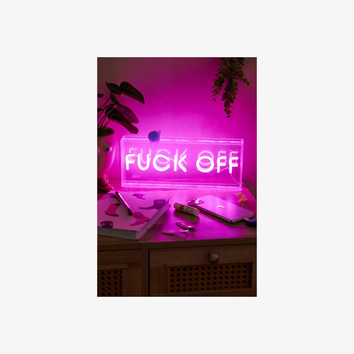 Establish your mood with this 'F*ck Off' neon light in your space. Perfect for topping a desk or dressing table, the neon light features plastic tubing with bright LED lights inside, USB powered for positioning wherever you want it. **Content + Care** \- Plastic \- Wipe clean \- USB Powered