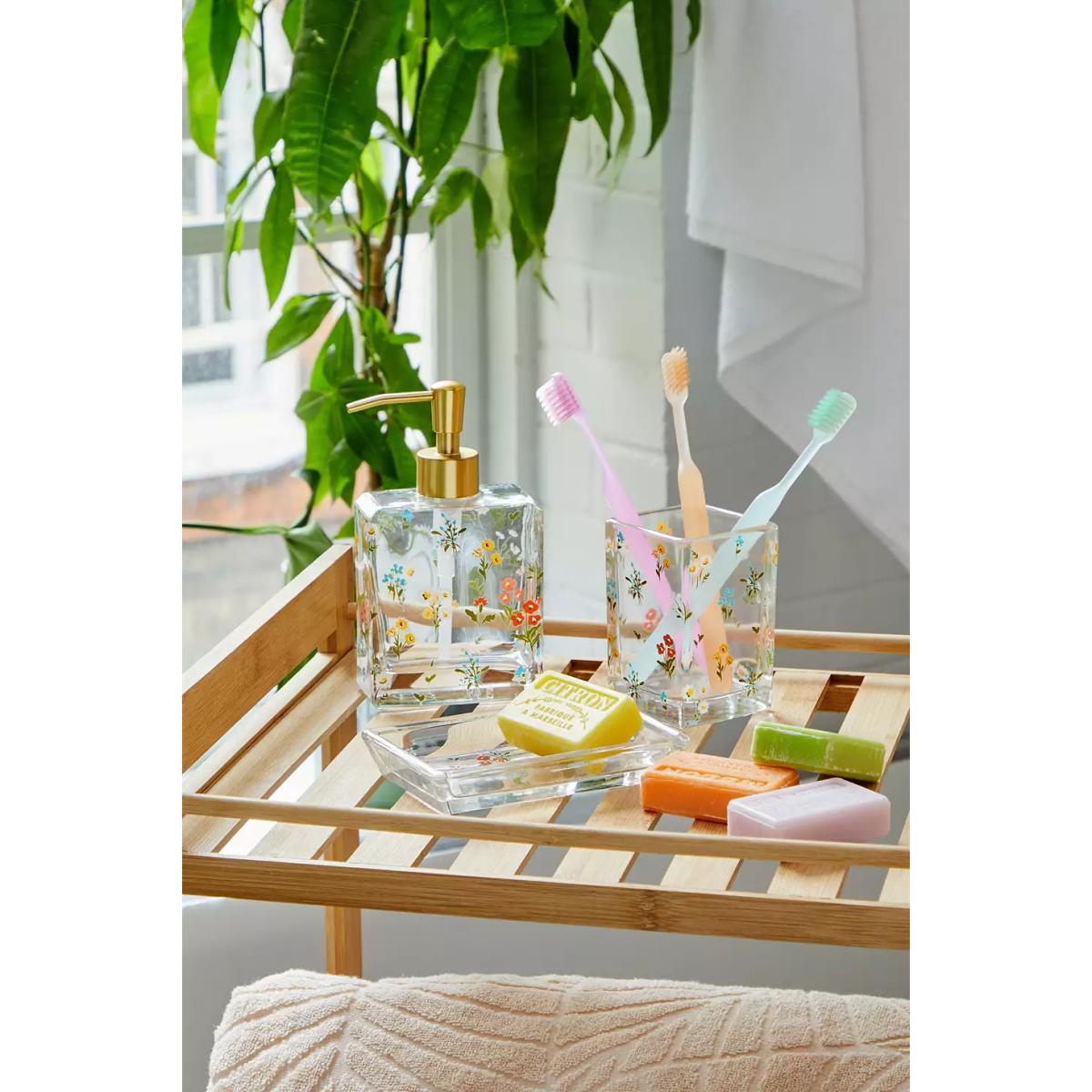 Add dainty floral print to your bathroom space. Crafted from a sheer glass construction with a square silhouette and floral print all over. **Content + Care** \- 100% Glass \- Wipe clean