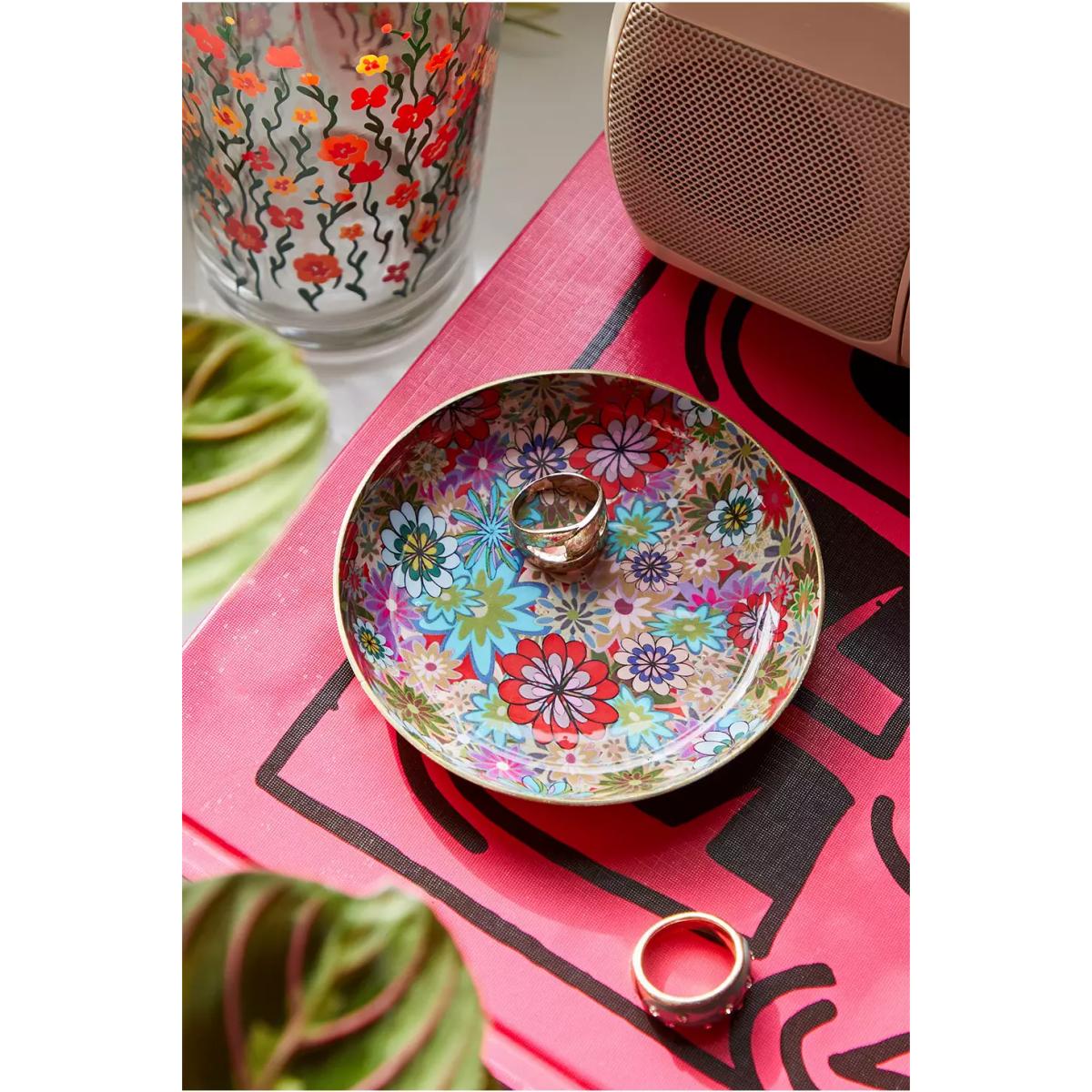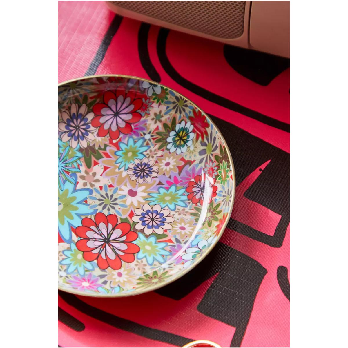 A bunch of multicoloured wildflowers add colour to this circular trinket tray. Lightweight metal tray with raised edges and a print to top. **Content + Care** \- Iron \- Wipe clean
