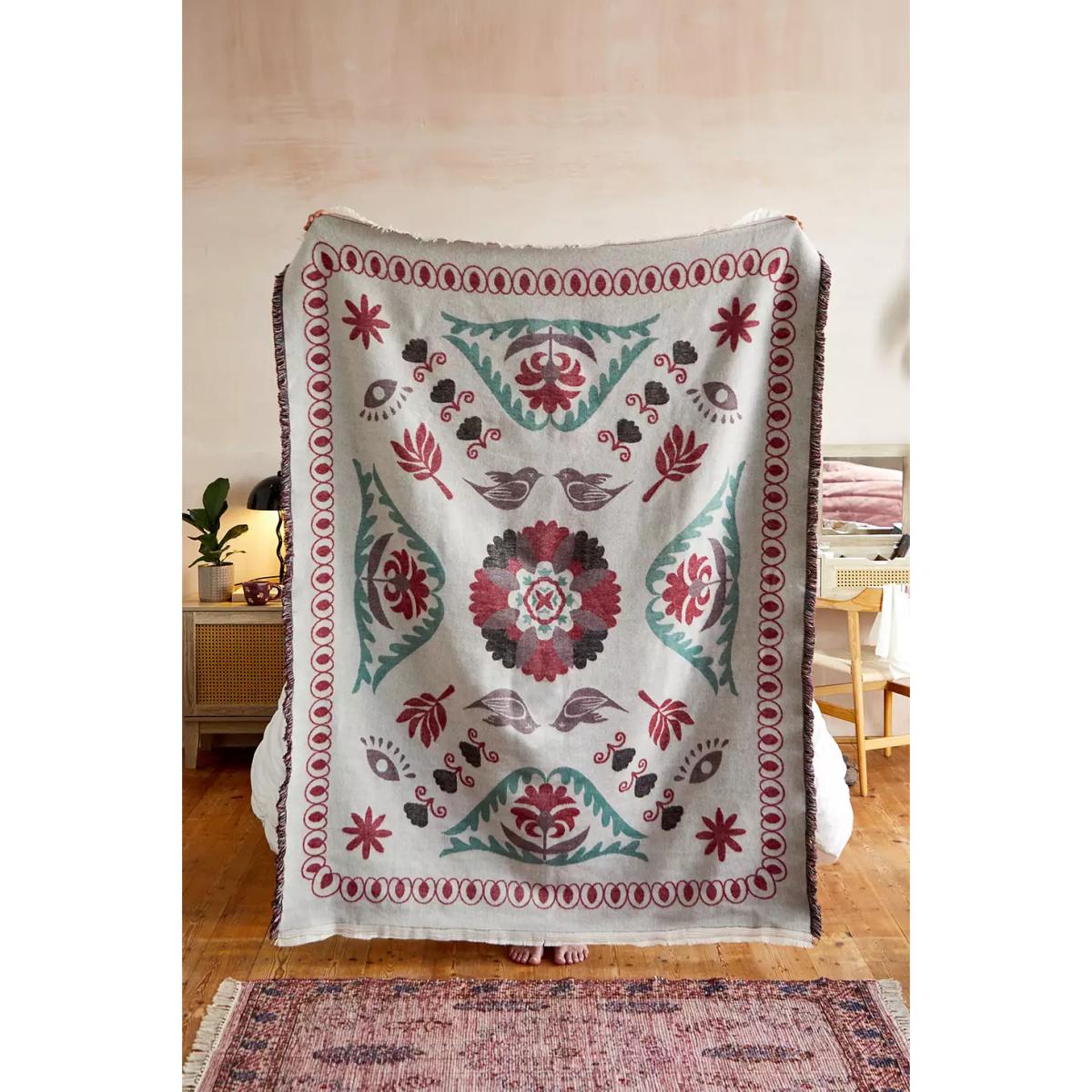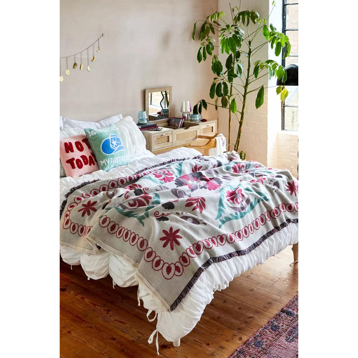 I love this tapestry throw for its bold, folk-inspired design that can instantly add character to a room. It works well as a statement wall hanging in living spaces or as an eye-catching throw over a neutral bedspread or sofa, bringing colour and texture into the mix. It’s particularly suited to eclectic, boho, or vintage interiors, but can also shine in modern settings when paired with other layered textures. For styling tips, try draping it casually over a sofa or chair, or hang it as a focal piece on a feature wall. Mixing it with natural wood accents or soft, muted textiles can create a cosy, inviting feel that’s both styled and sleepable.