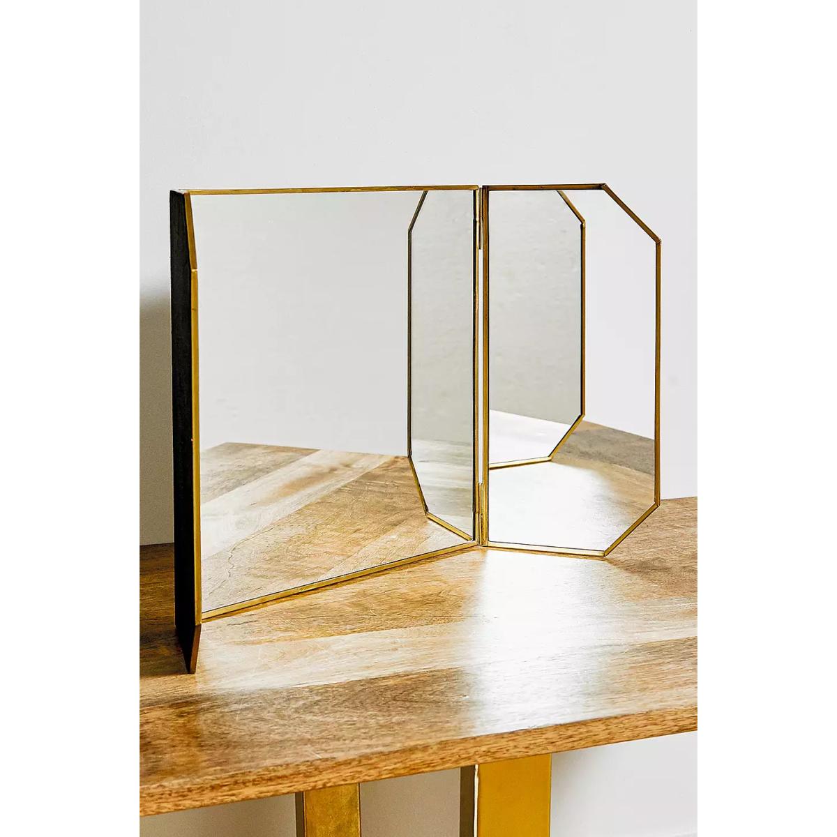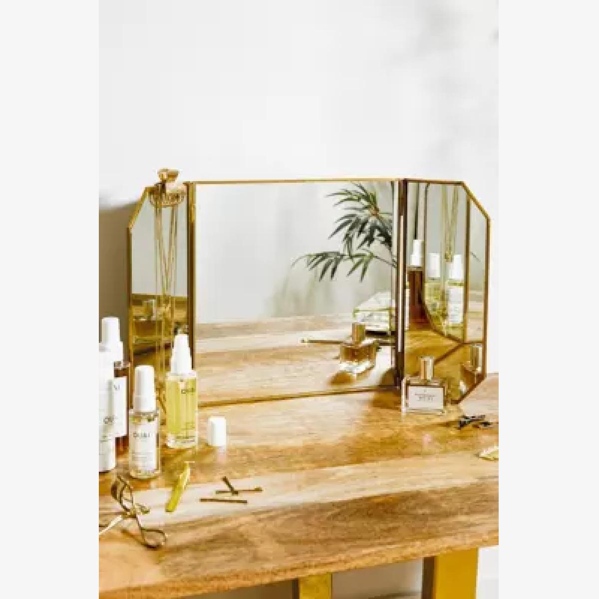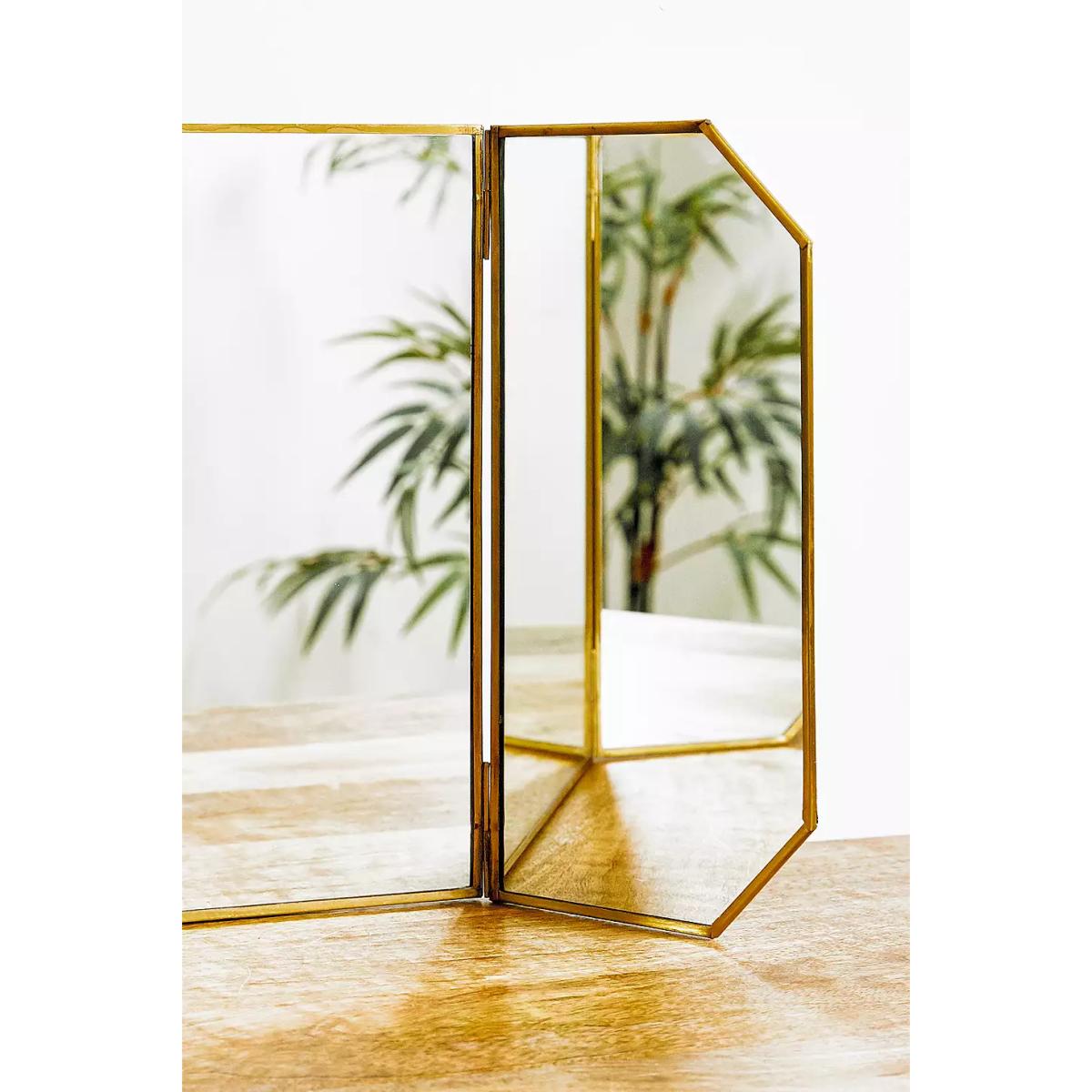 Perfect your getting-ready space with a fold-out dressing table mirror. Features a folding three-panel design with gold metal trims. **Content + Care** \- Brass, Glass \- Wipe with a nonabrasive cloth **Size** \- H: 30cm x W: Max 61cm x D: 5cm
