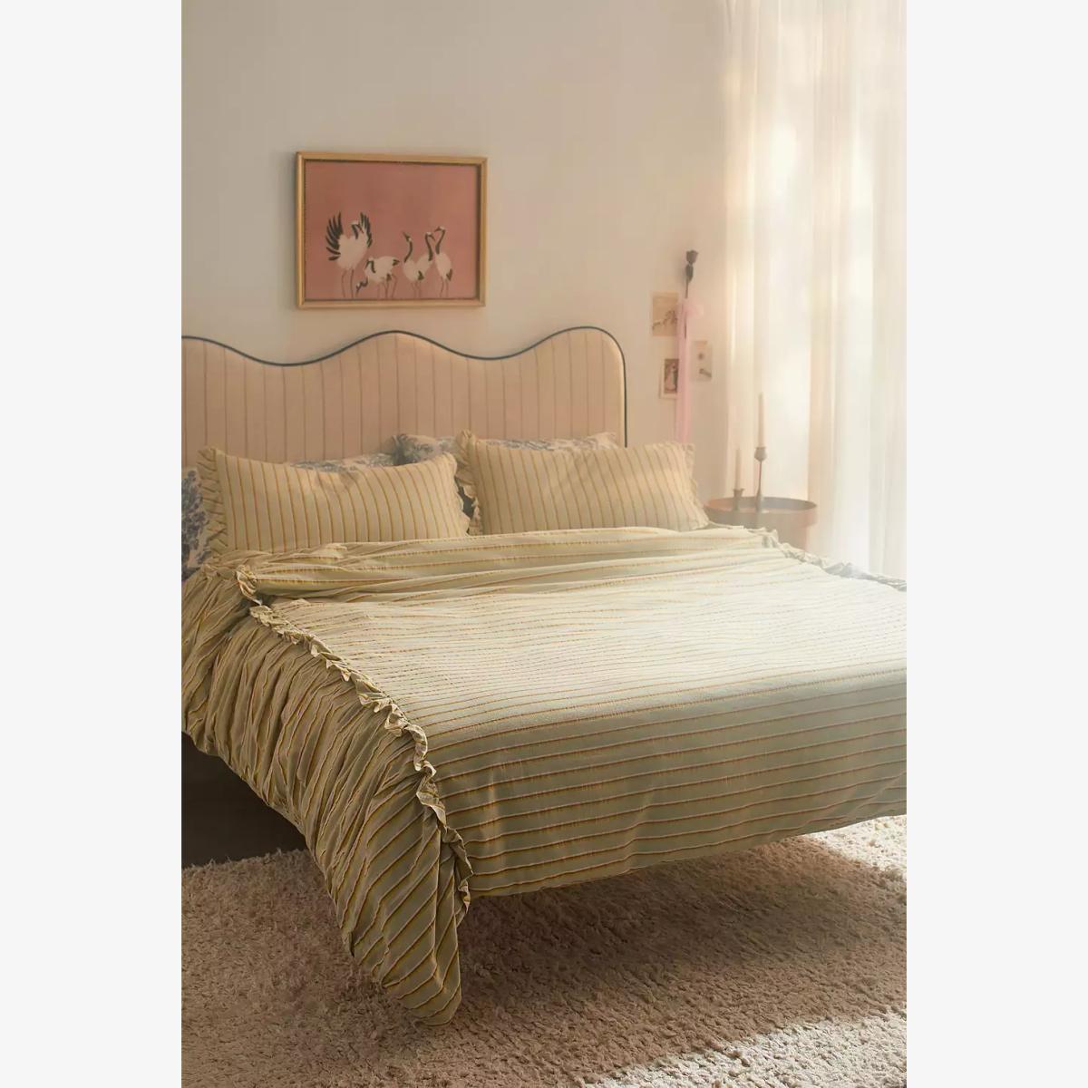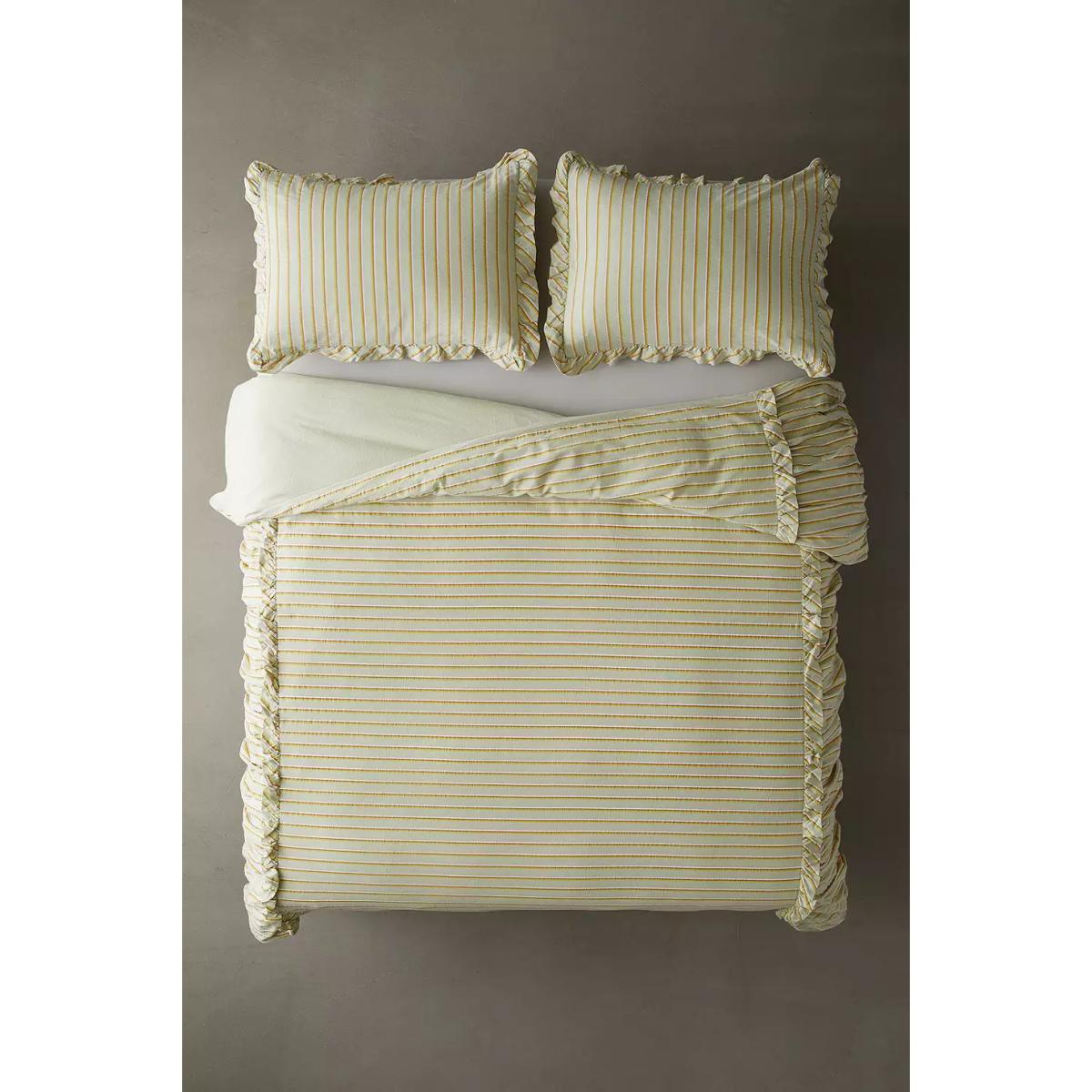 Urban Outfitters Green Stripe Ruffle Double Duvet Set - Green
