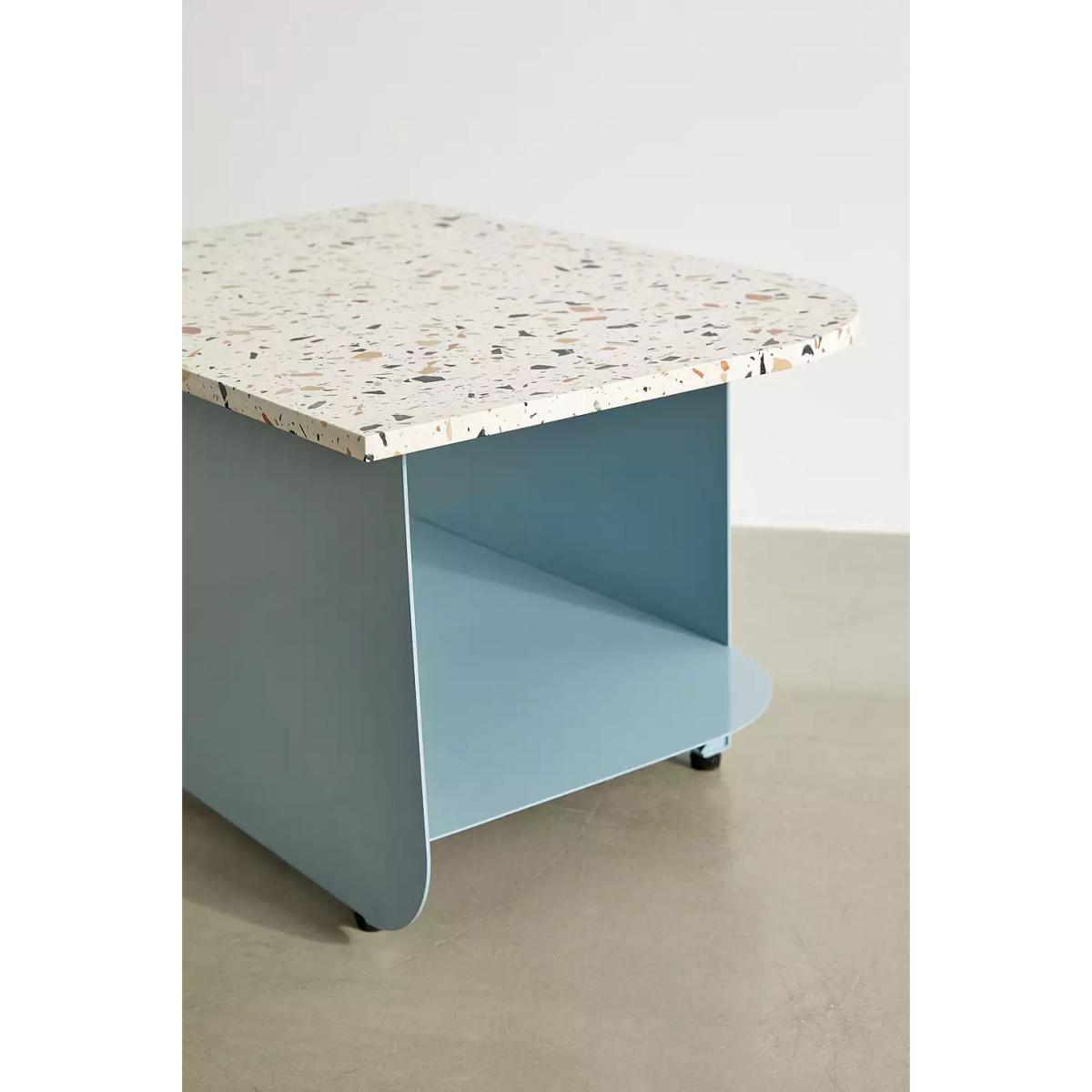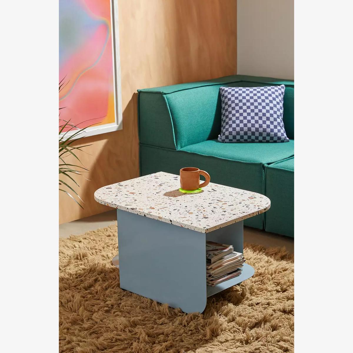 In a low silhouette, the Hans coffee table is a terrazzo-topped furniture piece that'll add a trending element to your living room. Features a lightweight metal frame with a speckled terrazzo top. Finished with integrated shelf at the base to store magazines, books, throws or anything else. *Online return only. This item cannot be returned instore. Please note furniture items currently cannot be shipped to Northern Ireland or The Republic of Ireland. Delivery of large furniture items may take 2-3 weeks and are therefore not eligible for Next Day Delivery.* **Content + Care** \- Iron, Terrazzo \- Wipe clean \- Assembly required - instructions and hardware are included **Size** \- Dimensions: L: 81.3cm x W: 55.9cm x H: 43.2cm \- Leg height: 43.2cm \- Clearance: 41.9cm \- Weight limit: 100 lbs \- Weight: 75.7 lbs \- Shipping package dimensions: L: 304.8cm x W: 172.7cm x H: 53.4cm \- Shipping package weight: 65 lbs