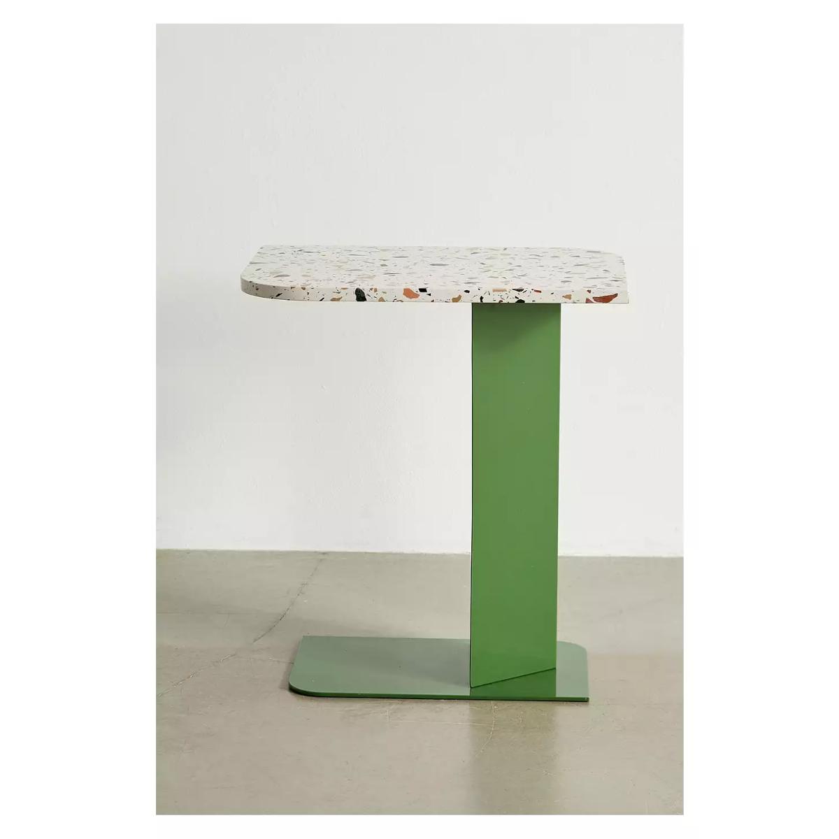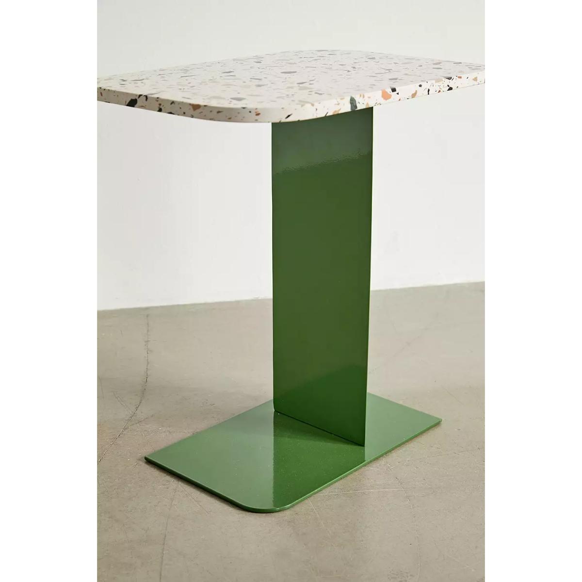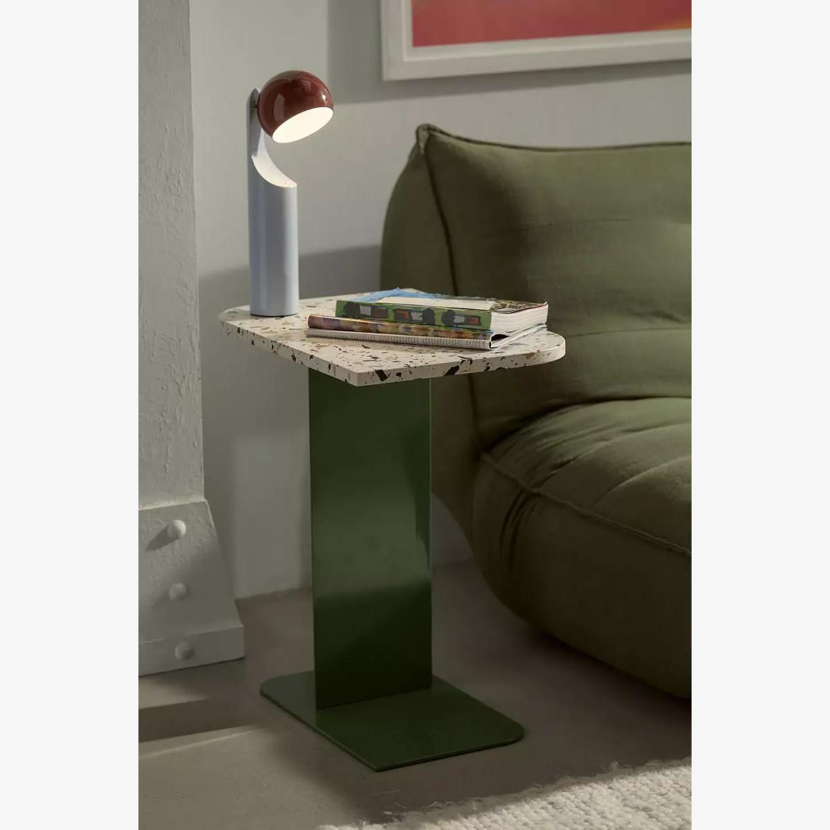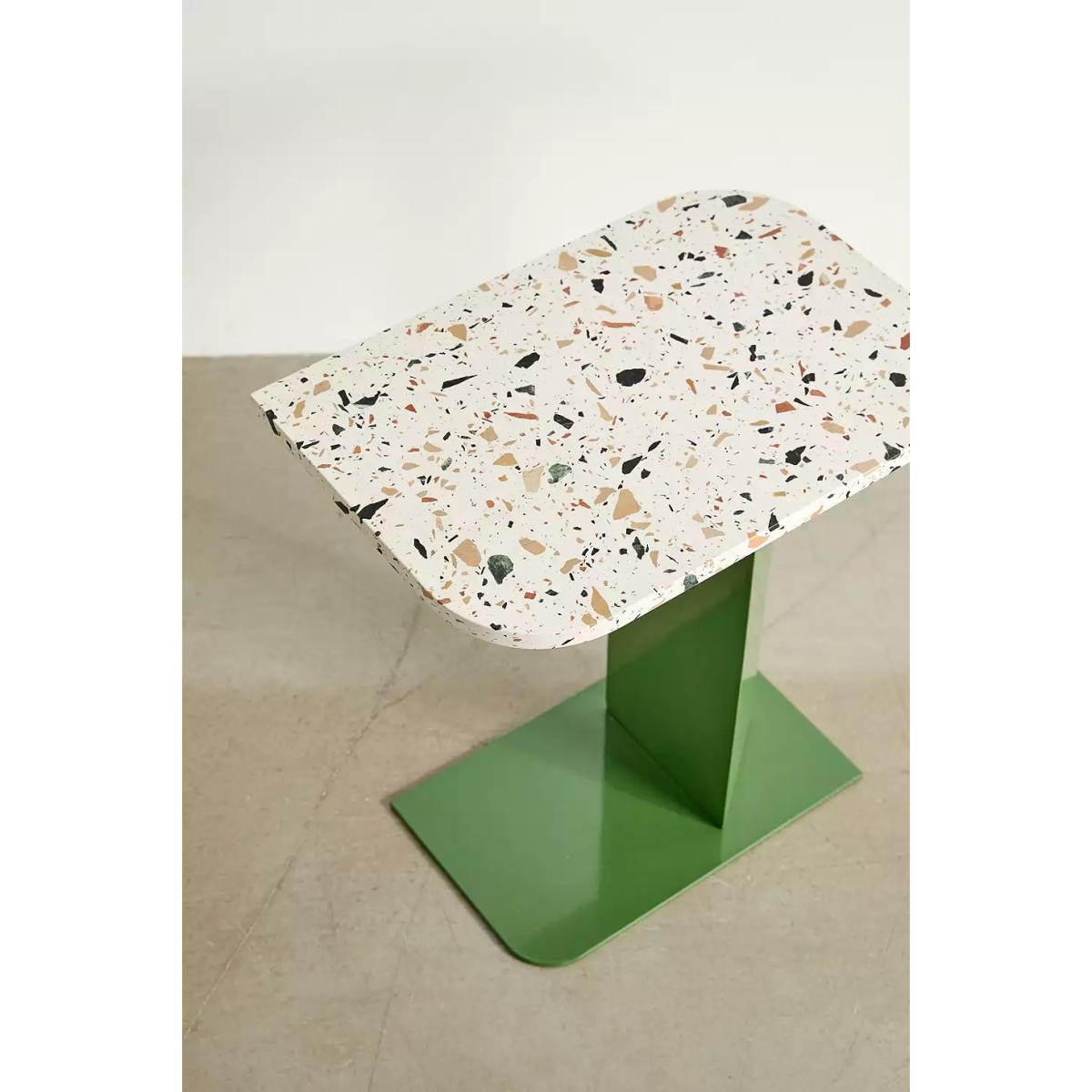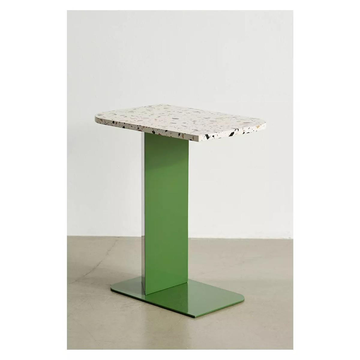 Terrazzo-topped side table that's part of the Hans collection. Trending side table with a speckled top in authentic terrazzo and a lightweight metal base underneath. Features a C-silhouette with a skinny base and a smooth edged tabletop. *Online return only. This item cannot be returned instore. Please note furniture items currently cannot be shipped to Northern Ireland or The Republic of Ireland. Delivery of large furniture items may take 2-3 weeks and are therefore not eligible for Next Day Delivery.* **Content + Care** \- Iron, Terrazzo \- Wipe clean \- Assembly required - instructions and hardware are included **Size** \- Dimensions: L: 50.8cm x W: 35.5cm x H: 55.9cm \- Leg height: 53.3cm \- Clearance: 50.8cm \- Weight limit: 100 lbs \- Weight: 22.6 lbs \- Shipping package dimensions: 58.4cm x W: 43.1cm x H: 20.3cm \- Shipping package weight: 27 lbs