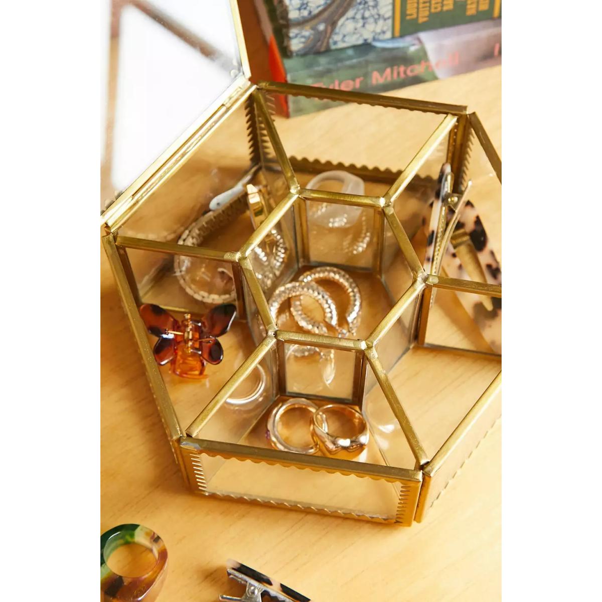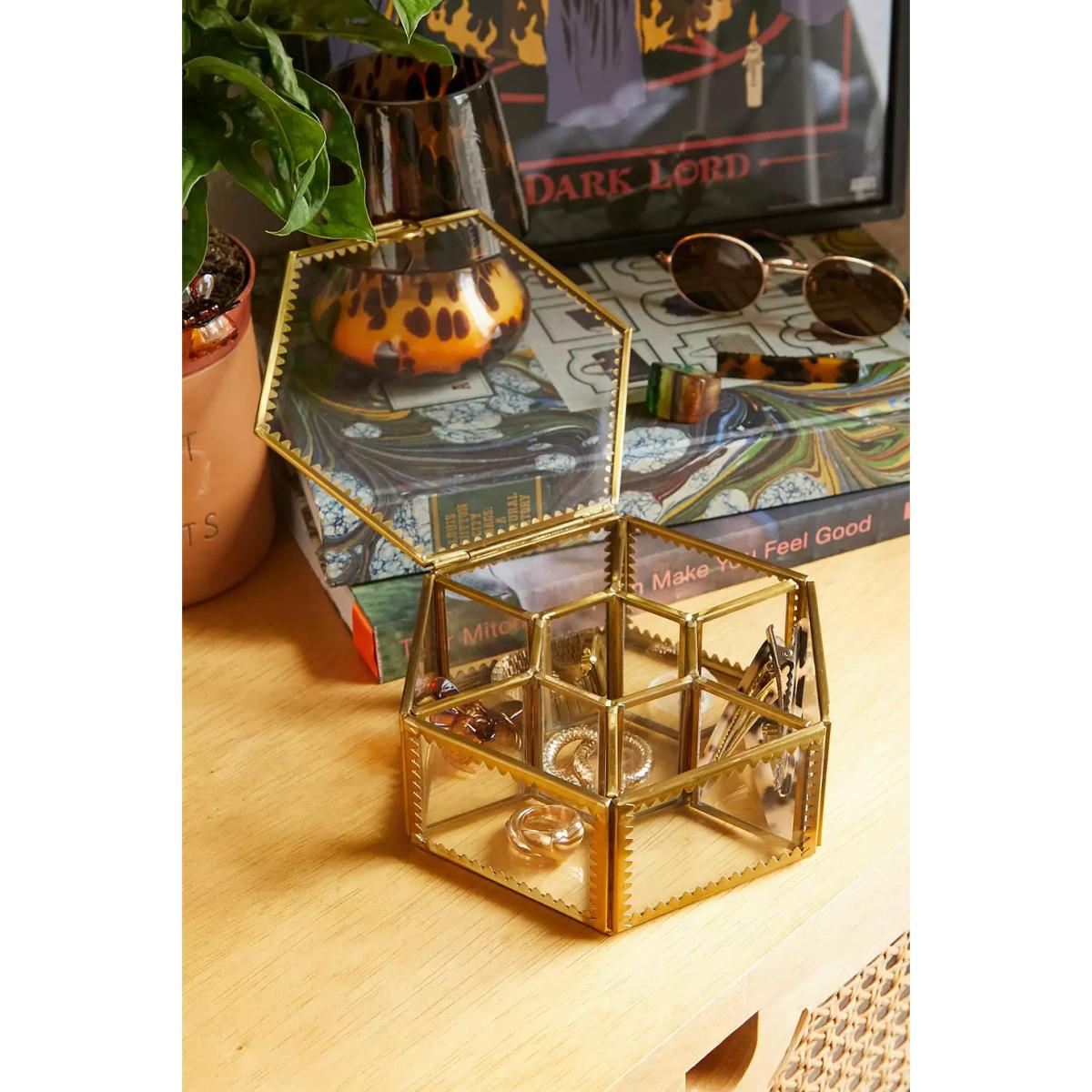Urban Outfitters Hexagonal Glass Jewellery Box ALL