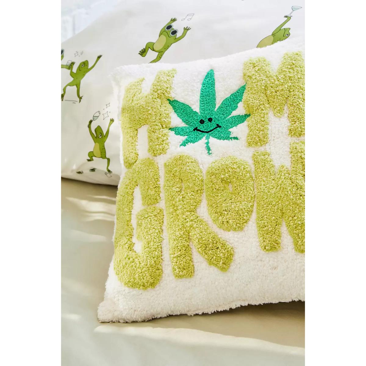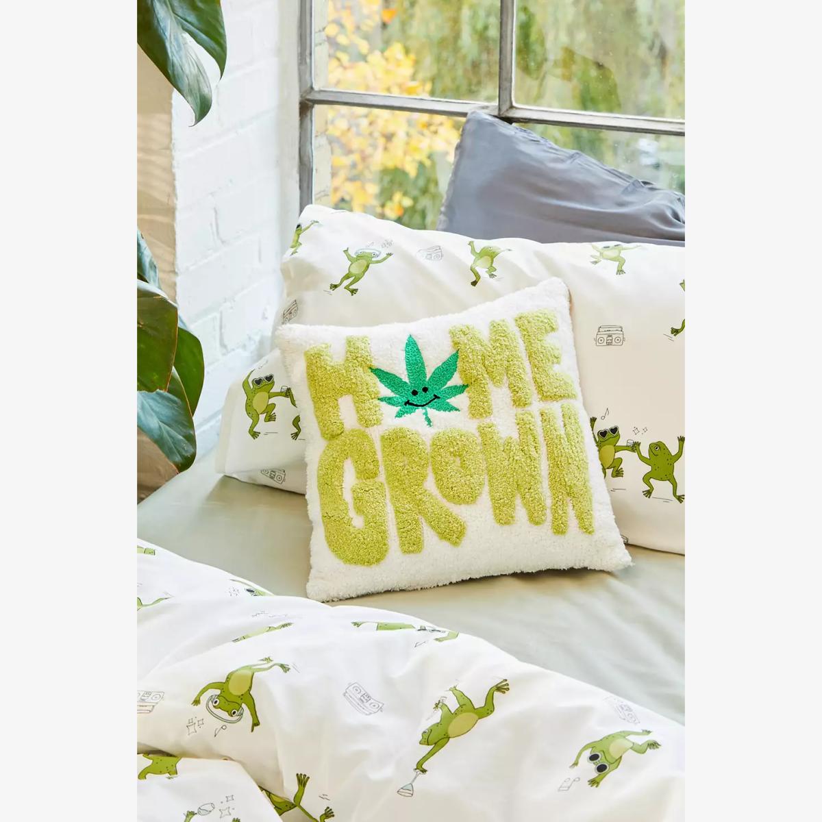 Deck out your smoke space with his 'Home Grown' cushion. The super-soft cushion features a leafy motif in a tufted cotton design, complete with a plush interior fill making the cushion a soft addition to your bed or sofa. **Content + Care** \- Main: 100% Cotton \- Fill: 100% Polyester **Size** \- 35cm x 35cm