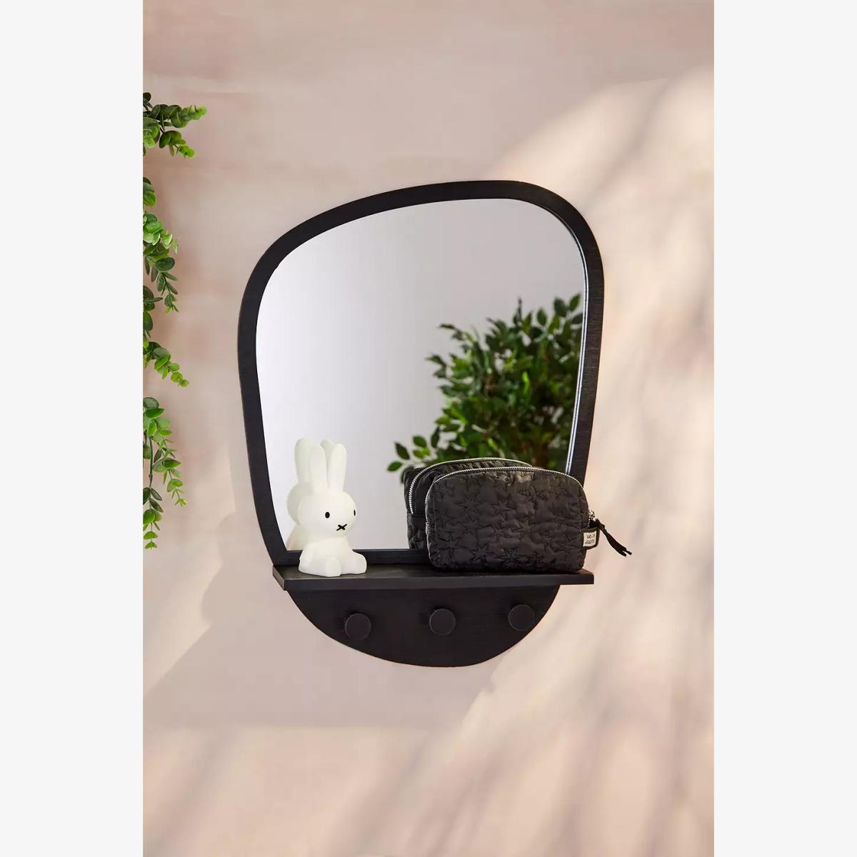 Curved silhouette mirror with a shelf underneath, part of the UO exclusive Isobel collection. Wall-mounted mirror and shelf combo with three circular hooks for hanging coats or accessories underneath. **Content + Care** \- Fibreboard, Glass \- Wipe clean **Size** \- 47cm x 12cm x 60cm