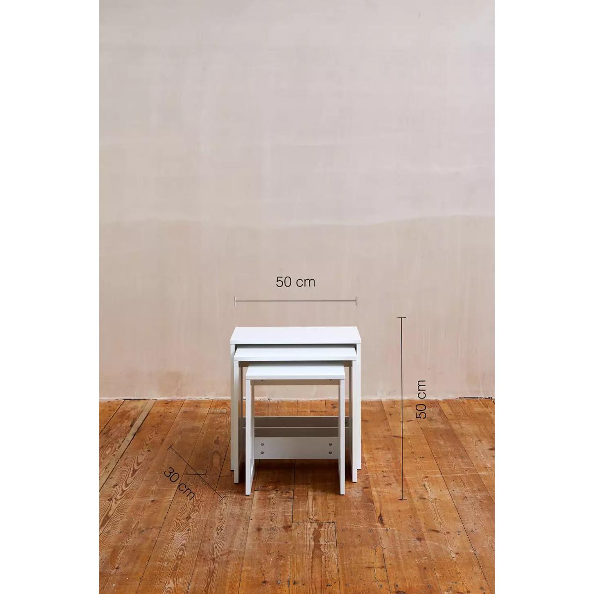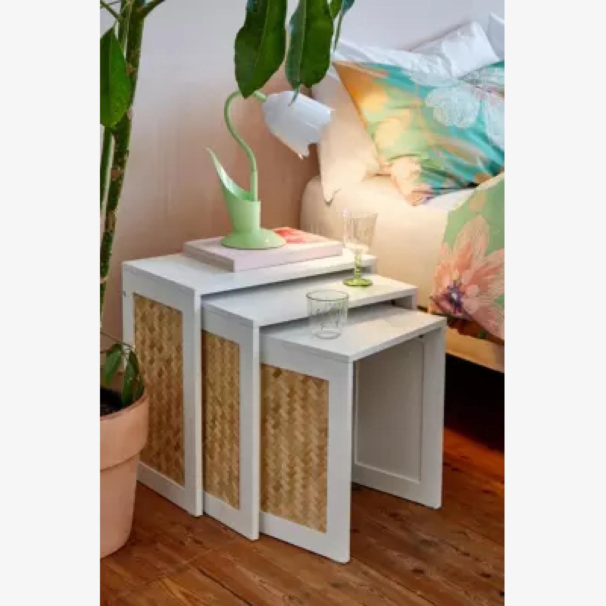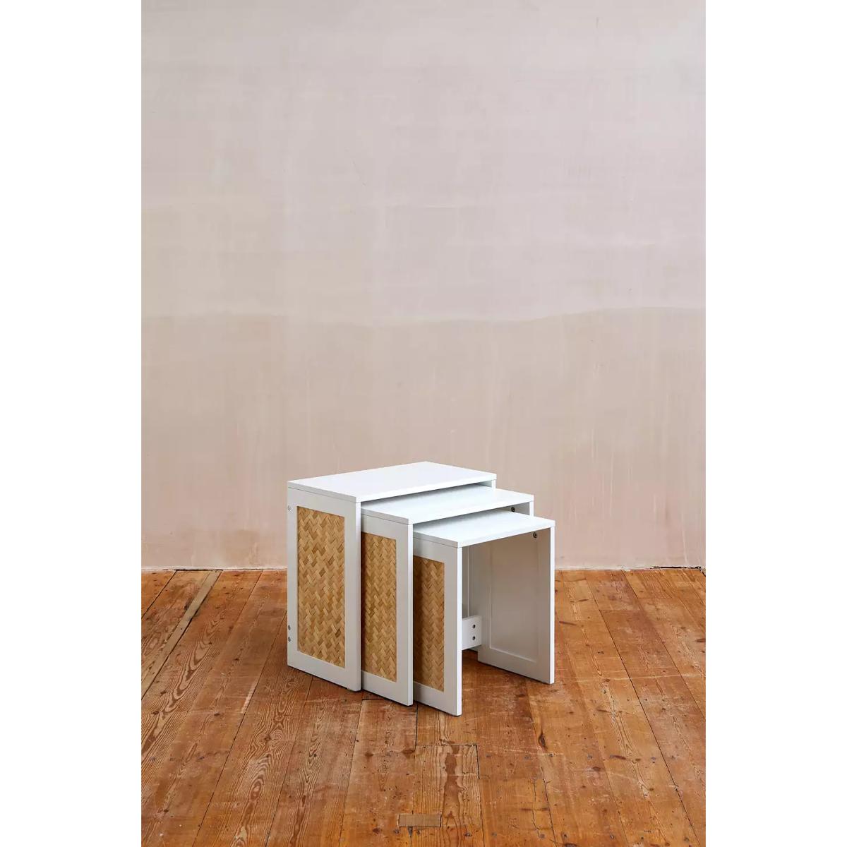 Elevate your space with a set of three nesting tables, part of the UO exclusive Joan collection. Includes three stackable side tables with rattan side panels in woven bamboo. Minimal silhouette style with MDF sides and clearance underneath. **Content + Care** \- Includes 3 tables \- MDF, Bamboo \- Wipe clean **Size** \- Table 1: W:50cm x D: 30cm x H: 50cm \- Table 2: W: 45cm D: 28.5cm x H: 46.5cm \- Table 3: W: 35cm x D: 27cm x H: 42.5cm